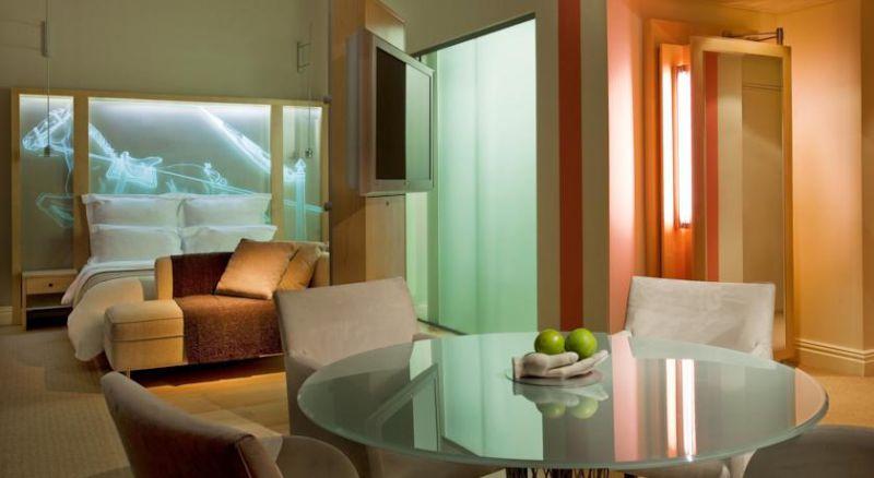 Описание номеров: ванная комната, фен, спутниковое телевидение, телефон, мини-бар, сейф, кондиционер, утюг и гладильная доска, кофеварка, чайник, возможность выхода в Internet. Интерьеры помещений выполнены в стиле Art-Tech, Удобная изящная мебель, зеркала, солнечные яркие тона, самые последние технические достижения.