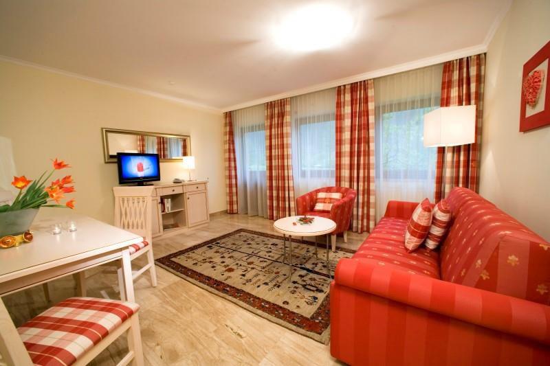 Double room - ванная комната, отдельный туалет, фен, косметическое зеркало, халат, удобная зона отдыха, радио, телефон, сейф, мини-бар, кабельное телевидение, некоторые с диваном, камином и кроватью с балдахином, все номера оснащены балконом или террасой.Appartments - гостиная с удобным диваном, кабельное телевидение, просторная зона отдыха, телефон, спальня с кабельным телевидением, телефон, сейф, мини-кухня, холодильник, ванная комната, отдельный туалет, фен и халат.