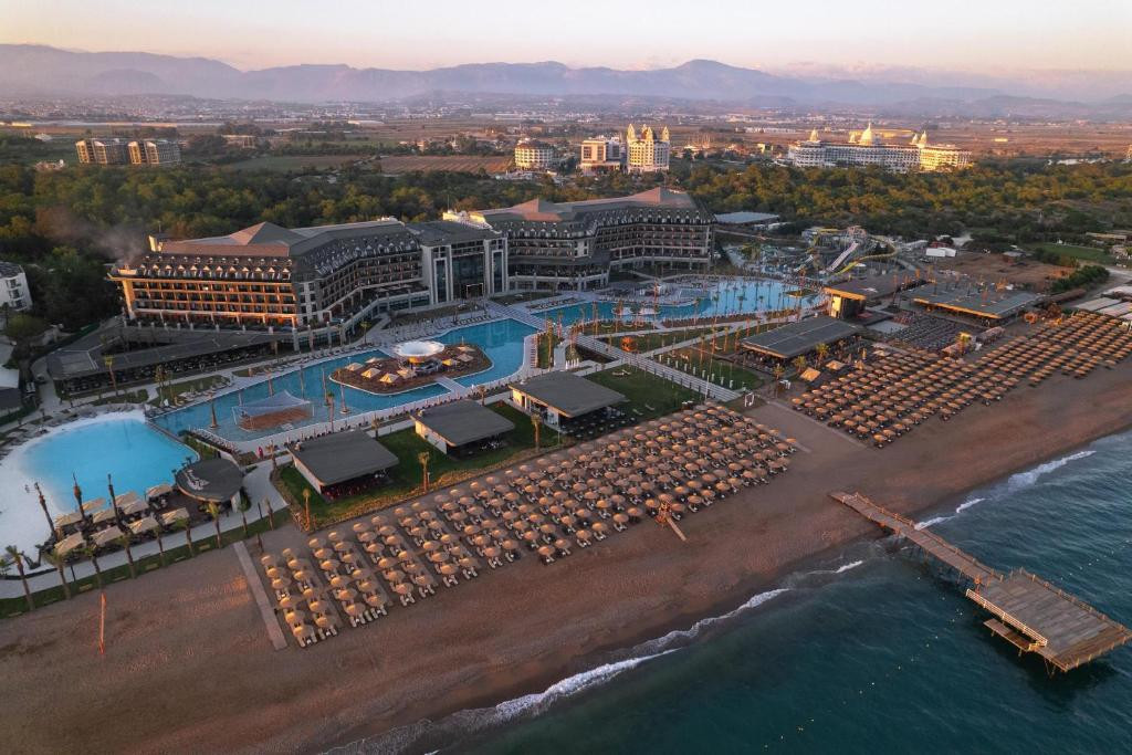 Отдыхали здесь с 12 по 23 июня 2025, номер семейный двухэтажный с видом на море, 2взр и дети 6 и 13 лет. В общем и целом понравилось очень, но не без нюансов ) Сам отель - большое 5 этажное здание вдоль линии берега. Всю территорию отеля вы видите на фото, собственно это небольшое пространство между зданием отеля и пляжем, и практически все занятое бассейнами. Если берёте номер с видом на море - будьте готовы, что вся жизнь отеля от рассвета до заката будет проходить перед вами. Особенно шумная левая сторона, если смотреть на море, здесь вся анимация, аквапарк, вечерние шоу и живая музыка в баре до 00:00, покупайте беруши ) Номер прекрасный, на первом этаже родительская спальня с отдельной дверью, в ней 1 двуспальная и 1 односпальная кровати, на втором этаже в спальне детей 2 односпальные кровати. В обеих спальнях балкон, кондиционер, свой минибар и санузел, то есть комнаты полностью автономны. Питание - мне было отлично, я предпочитаю простую еду - зелень, овощи и мясо, с этим никаких проблем, все вкусно. Шампанского и красной рыбы на завтрак нет ) Очень классный тренажерный зал. Аквапарки для младших и старших, горок много, детям весело. Но имейте в виду, что во «взрослый» аквапарк детей пускают с 10 лет и от 130 ростом, Мой 6летка очень был расстроен, в малышковом ему было скучновато. Пляж и море. Пляж очень широкий, просто прекрасный, песок, а на входе мелкая Галька. И большую часть времени в середине июня он был пустым! смотришь на соседние пляжи - там людей гораздо больше. И вход в море лучше, чем на соседних пляжах (там плиты). Глубоко уже через шагов 7. Вода лазурная, чистая и в середине июня уже теплая. К нюансам отнесу уборку номера - она не то чтобы плохая, но горничные то что-то забудут, не пополнят косметику, заберут и не вернут халаты и т.п. в общем мелочь. Про левое крыло отеля повторюсь - весь шум сосредоточен здесь, и удовольствие от прекрасного вида сильно портит долбежка до 00:00. Ну и в заключение - после 18.06 народу в отеле сильно прибавилось, причем большими семьями (семейных номеров-то много) и сразу толкучка в ресторанах и часами занятые лежаки, после 9:30 у бассейна лежак почти не найти. Бронь лежаков «детскими трусами и всем, что под руку попадется» - наглая и беспощадная. Персонал за этим не следит (да и как это отследишь). Резюмируя - до 18 июня это был просто великолепный, красивый, просторный отель, мы успели насладиться им до большого заезда )