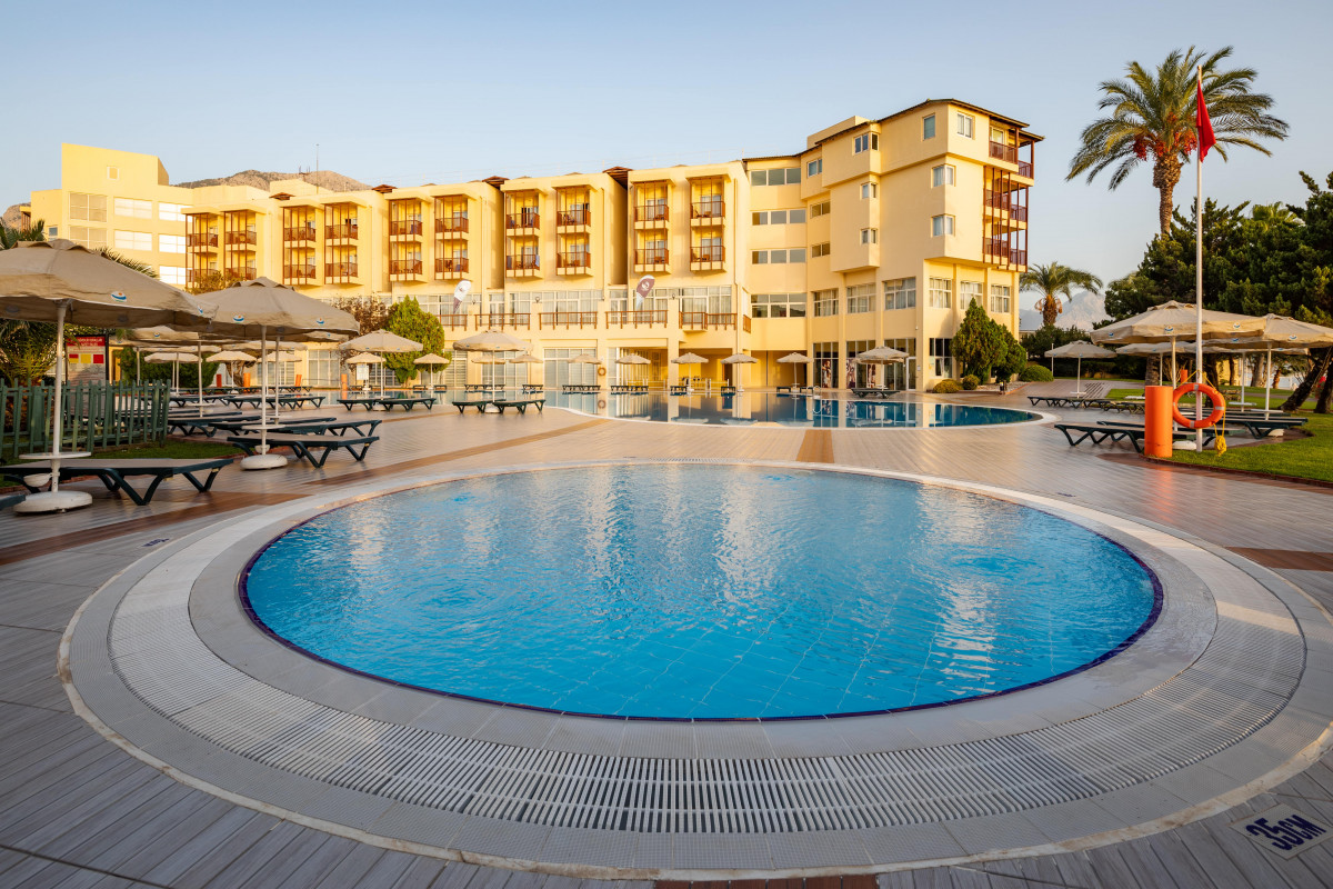 Отель хороший. Но есть свои плюсы и минусы. Если говорить о том, вернулась бы я сюда? Навряд ли. Плюсы: отлично кормят, разнообразные блюда (но не завтраки, каждый день одно и то же, всегда), каждый день уборка в номерах, огромная зелёная территория отеля, за которой ухаживают, много плодовых деревьев, чистое море и пляж, много лежаков и тенты над ними, хамам работает ежедневно, приятный персонал, любят детей, есть стульчики для кормления и при необходимости предоставляют кроватки, в основном ресторане можно для малышей взять пюрешки в баночках, Wi-Fi в номерах, над детскими бассейнами натянуты тенты от солнца, многие из персонала говорят по-русски, расположение в центре Кемера, всё в пешей доступности, отзывчивый персонал на ресепшене. Минусы: для маленьких детей нет горшков, но это мелочь, уставшие номера, смеситель тяжело переключается, видимо заржавел, кондиционер в номерах давно не чистили, если в него заглянуть, видно грязь и пыль, ресторан а-ля карт не советую, особенно идти туда с годовалыми детьми, для них там еды нет и они там просто останутся голодными и ждать блюда очень долго, персонал в спа-центре обманывают на мелочах - продают кесе за 12€, когда на рынке они стоят 1$. По-моему такое поведение это свинство, как и работа отельного гида - не знает свои туристические продукты, которые продаёт, лишь бы продать (если бы она какие-то подробности туров рассказала (но она их просто не знала, видимо), мы бы годовалого ребёнка с собой не взяли), и ещё курс евро завысила при продаже (зовут Алина Хуснитдинова сразу скажу), что бы у неё не спросила ничего толком не знает, либо увиливает от ответов, на пляже ходит мужчина и продаёт свои услуги сильно завышая цену за 120€ за двоих за полёт на парашюте.