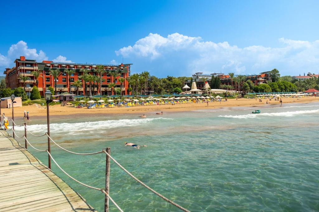 Отель замечательный. На берегу моря, широкий песчаный пляж, пологий вход и неглубоко, с ребенком то, что хотели. Море чистое и теплое. Заселили раньше, номер дали с видом на море. Питание хорошее, фруктов было много и разнообразные, мясо тоже было разное, не только курица и индейка, еще говядина, баранина, язык был. Я дважды видела специалистов, которые брали пробы еды в коробочки (типо нашего СЭС видимо). Персонал приветливый. Единственно по русски из персонала говорят всего несколько человек. Много европейцев, русских меньше. Территория совмещенная с двумя соседними пятерками довольно большая, зеленая и ухоженная. Для вечерних прогулок нам хватало. Вечерние шоу на выбор интересные. В целом мы остались довольны.