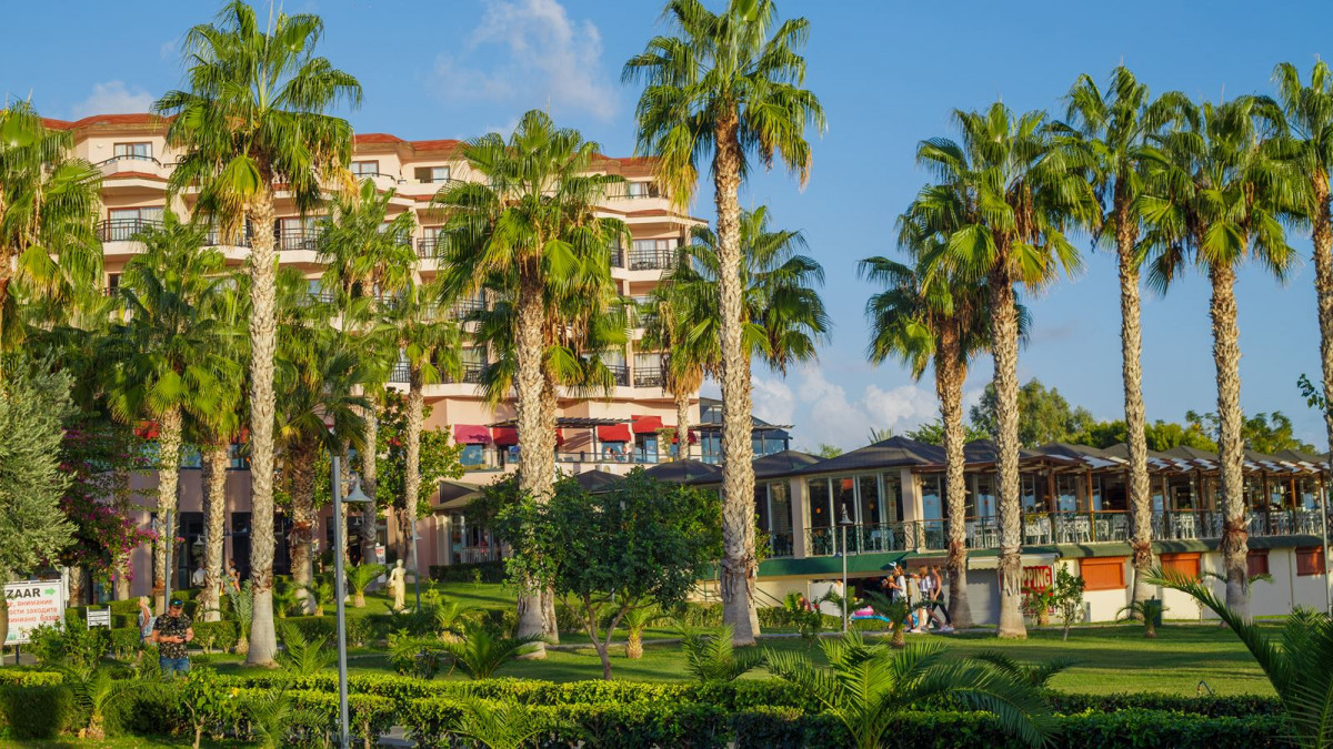 Отдыхали с детьми в мае. Из положительного - только большая территория, и пожалуй терраса на втором этаже, где можно пофоткаться и посидеть на качели с видом на море (если конечно успеешь проскочить)! Питание безобразное, хуже чем в тройках: гнилые фрукты - и те, яблоки, апельсины, груши. Арбузов и дынь ни разу не было. Пирожные - просто гадость, все нарядные, но есть невозможно! На завтраках полупустые шведские столы. За яичницей - очередь, за мясом так же! Из съедобного курица, один раз за 11 дней дали мясо - очередь стояла человек 30! Даже стоять не захотелось! Один раз кончились даже нарезанные помидоры. Детский стол - просто какая то блевотина. Номера старые, с убитой сантехникой и душевыми. Стены картонные. Слышимость 200%. По ночам дискотеку, по утрам - уборщиц, которые почему то орут в холе в полный голос с 7 утра, и гремят ведрами. Постельное белье сырое. Уборка плохая. Детское мини диско - 15 минут. Одно название. Аниматорам гораздо интереснее продавать сумки и майки под раскраску детям и пол вечера их раздавать на сцене. При этом, если у какого то ребенка был д.р. - даже несчастную турецкую фенечку или пирожное несъедобное не дали! вызвали на сцену, сказали с днем рождения, и вали типо. Надо видеть глаза детей при этом! Вход в море галька, как в Сочи! Пока зайдешь - переломаешь ноги! через два метра уже глубоко! С маленькими детьми - опять мимо! Есть детский аквапарк - но там вода как из колодца. При этом во взрослом прям супер теплая. Территория большая, но делать там особо нечего. За территорию выйти некуда! Сразу начинаются свалки мусора и дорога. В итоге весь отдых - это детский теплый бассейн, картошка фри и яблочный сок! И это если еще не вспоминать про отсутствие уборки, вай фая, алкоголя (кроме их бадяги на кактусах), какой коктейль не попроси - вкус одинаковый, только цвет разный, недовольные лица официантов и барменов (а это еще только начало сезона), беспардонность обслуживающего персонала, который ведет себя так, как будто ты приехал к ним домой, а не в 5ти звездочный отель - и своим присутствием - мешаешь им делать свои дела по хозяйству: то кусты стричь, то полы мыть, то в 6 утра железным мастерком пол скрести, то землю в клумбы насыпать, то стены штукатурить! В разных были отелях! Но такой осадок - ни один турецкий отель за 8 раз не оставил. Даже 3ка в Хургаде - по питанию и отношению намного приятнее. Кальян покурить за доп плату - прям советую! Как отель для семей с детьми - точно нет!