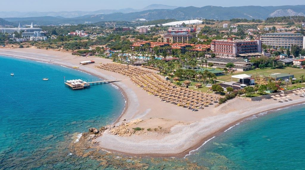 Отель находится на самом берегу моря в районе Окурджалар, в 35 км от центра Алании, в 90 км от аэропорта Анталии.