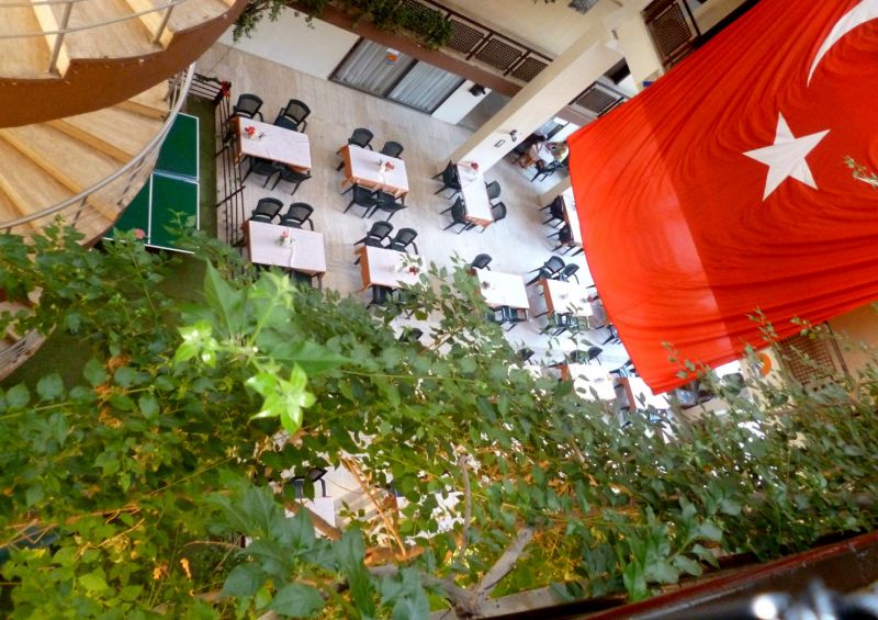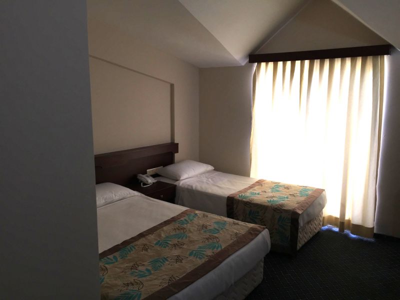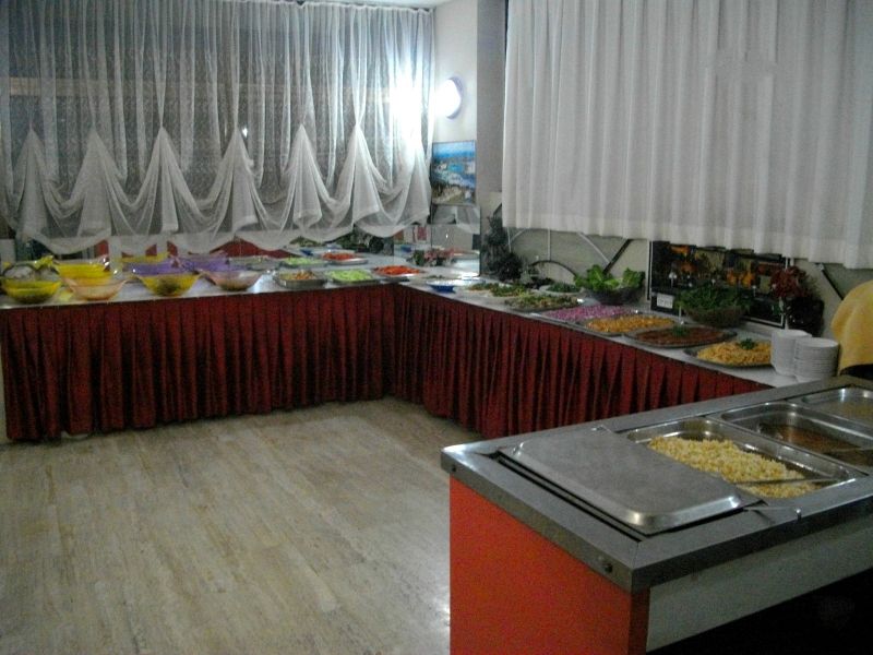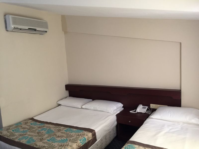 После нахождения в этом отеле нужно время что бы придти в себя и отдохнуть. Завтрак либо гренки либо яичница, остальное без изменений: вареные яйца множество сыров (очень соленых), сухой завтрак который можно залить молоком, масла сливочного нет, только маргарин. Обед, соевые котлеты в виде люля, субпродукты(куриная печень), рис, иногда картофель, иногда булгур, тушёные кабачки (это все в разные дни), и естественно макароны, огурцы, помидоры, очень соленые соленья, нашинкованная капуста (просто свежая), что то типо колбасы, нарезанная толщиной с лист бумаги , хлеб белый либо серый(лежит булками, нарезаем сами),на десерт нечто похожее на пироженное наверное, но тоже есть невозможно, оно то ли жирное то ли склизкие и очень сладкое. Ужин: люля(чаще очень острые и пересоленные), иногда что то из курицы: ножки, бедро, грудка и даже спинки, как отдельное блюдо. Гарниры как и на обед без сильных изменений. Полдник: кекс влажно-жирный и чай/кофе Стаканы все пластиковые, часть посуды со сколами. В отеле есть посторонние запахи плесени и отходов. В номере. За все время прибывания мы так ни разу не увидели горячую воду,(неоднократно обращались на ресепшн и к менеджеру, но в ответ было лишь то, что они сегодня уже починили и завтра вода будет)очень радовались когда была тёплая( такое было пару минут за всё время), душ просто из стены без возможности его оттуда снять и нормально помыться. Когда включаешь воду она разливается по всей ванной комнате и на полу озеро. Зеркало вкруг обклеено скотчем и возможно держатся на нем, полочки под ним нет, хотя крепления присутствуют, шкаф сломан, дверца холодильника тоже. Дверь на балкон не закрывается (приходилось подпирать пуфиком, что бы не переживать за свои вещи), на балконе нет также натянутой веревки, вещи сушить особо негде, так что берите с собой. Что такое чистота тут к сожалению не знают, протирают посередине и уходят,в номере постоянно грязно, один раз поменяли постельное белье,за 8 дней ни разу не меняли полотенца, полотенцем для ног мы протёрли озеро после душа, но оно так и осталось лежать. Связь с внешним миром: wifi только в холле, котором скапливается много желающих и там становится нечем дышать ибо кондиционер там не предусмотрен. Пляж на который возят от отеля в очень плохом состоянии, на входе в воду большие глыбы которые крайне сложно приодалеть без обуви, ходили на городской, там намного лучше, но лежаки платные. Плюсы отеля: Кондиционер в номере работает. Отель расположен в центре города, хорошая транспортная развязка. Есть трансфер до пляжа. Можно дойти до городского пляжа за 10 минут.