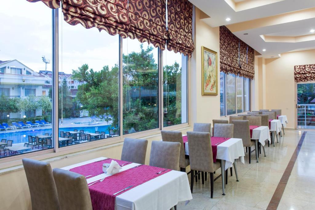 Отдыхали 27 сентября-5 октября вчетвером (20-25 лет, 2 девушки и 2 парня). Жили в старом корпусе в двух номерах, из которых открывается бесподобный вид на горы. Номера в точности, как на фотографиях, в них чисто и комфортно. Не очень удобно расположен кран в раковине, но это мелочи. В номерах регулярно обновляют полотенца, банные принадлежности и мини-бар (питьевая и минеральная вода на каждого проживающего). Территория отеля не большая. Есть детская площадка, два бассейна, один из них с горками (из 4х работают 3). Также есть спа-комплекс: сауна, хаммам, душевые, внутренний бассейн, массажные классные кабинеты. Мы посещали спа-комплекс на выезде, не впечатлил, лучше брать массаж при отеле- он нам понравился гораздо больше. По карточкам выдают полотенца для пляжа. Можно менять каждый день. Выбор еды не велик, но ее очень много. Курица, мясо каждый день, рыба была 2 раза, она нам не понравилась. Большой выбор салатов, сладостей. На баре кола, спрайт и прочие напитки в стаканах с 10 до 00, также алкогольные напитки- пиво, джин, виски и различные коктейли. Есть бар на пляже: мороженое по часам, газировки и вино. До пляжа 5 минут пешком, он переполнен, на лежаках удалось полежать только 2 раза из 9 дней. Море чистое, теплое. На территории пляжа отеля очень близко расположен автотранспорт (различные катера, бублики и прочее). В отеле в основном отдыхают русские и поляки. За 9 дней вечерняя дискотека была 4 раза. Поющий диджей. Песни турецкие, русские и польские. Персонал очаровательный. Всегда улыбаются, многие говорят по-русски. Отдохнули на 100%. Кто придирается к мелочам- езжайте в пятерки)))