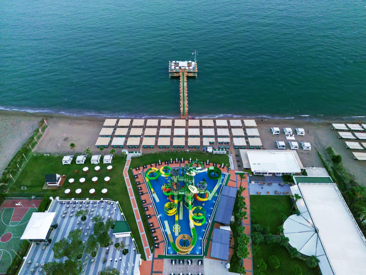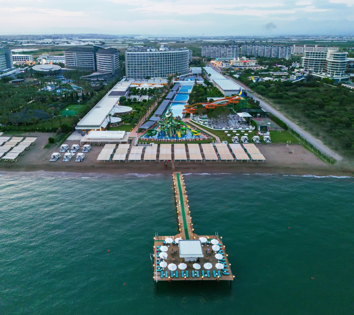 Недалеко от аэропорта. Компактный. Номера типа лофт,сырость в ванной комнате. Питание нормальное,однообразное. Бармены на пирсе угрюмые.Алкоголь не пробовал. Аквапарк ,ребенок доволен. Вечерние шоу неплохо. Итог:отель средний.Вернусь сюда?Врядли. Отель