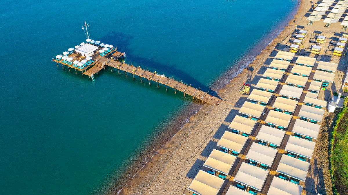 В 12 км от аэропорта, в 14 км от центра г. Анталья, на берегу моря.