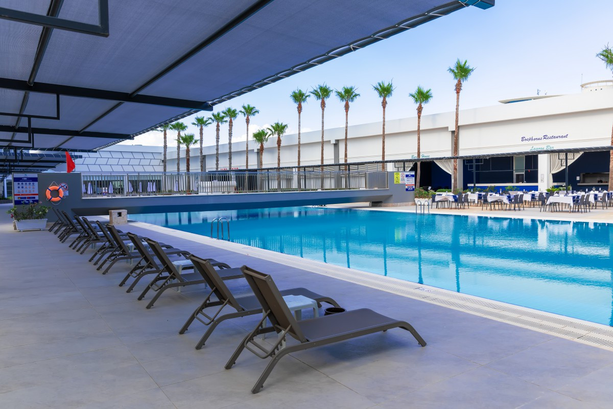 Отдыхали с женой в начале октября отель понравился у нас номер был с видом на море питание отличное, есть аля карты в лобби алкоголь импортный пирс с баром супер сеть хаммам, парная, аквапарк, анимация отличная также дискотека, отличный бюджетный отель обязательно приедем еще раз.