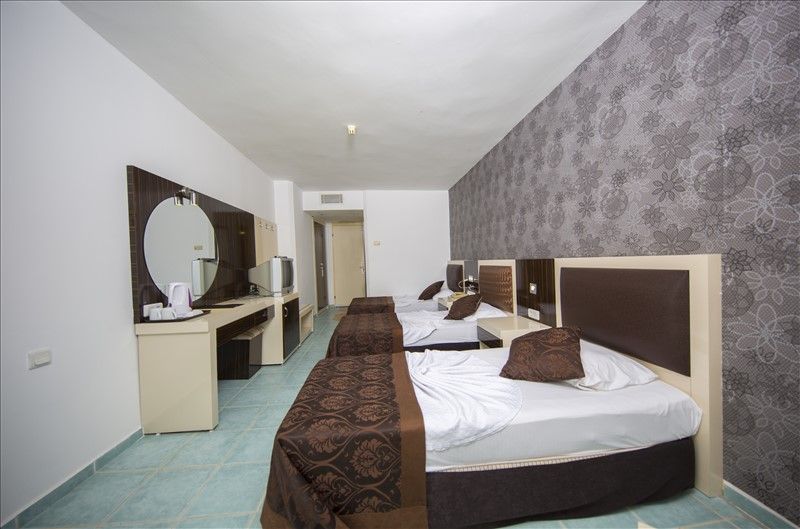 Отдых удался, всё отлично! Если приделаться, то мебель в номере имеет сколы. Уборка первые три дня отсутствовала, но наладив контак с ресепшен и самой горничной - убирались и даже украшали номер! На день рождение подарили бутылку вина и фрукты! У нас был 109 номер - вид на море. По самому отдыху: море рядом через переход 26 секунд идти не спеша по туннелю - отличный заход - никах плит нет (видимо убрали перед нашим приездом). Шезлонги всегда есть свободные, есть бар с напитками - только без алкогольные. Так как это отель совместно с 5кой) к ним кушать ходить, получается территория отеля с тремя бассейнами)) есть горки и релакс. Бары у горок в основном. И в 5 ке тоже бар). Алкоголь средний, но пить можно) коктейль делают такой крепенький) виски вина. Есть ещё тут же на территории магазинчики - цена даже ещё и дешевле чем за территорией если поторговаться)). Хочу позволить отдельно хамам - Володя Джан предлагает услуги хамам - если вы с ним познакомитесь - берите не думая) можете привет из Екатеринбурга передать от Алексея и Ирины - скидку сделает)). И самое главное что сама процедура хамам на высшем уровне. Была в Турции 6й раз и впервые почувствовала профессионалов своего дела без всяких пошлостей и тд. Массажист промял каждую косточку) жаль не могу сказать как зовут его - внешне худощавый небольшого роста, темные волосы и вроде бородка)). Мужу тоже делал массаж симпатичный похоже на русского - тоже хвалил его - только регулируйте силу) там же в хамам выдают полотенца для пляжа под депозит 10$, при выезде отдают без проблем). И можно ещё приходить бесплатно просто в сауну и поплавать в бассейне там же. Развлечения - анимация не навязчивая и видно не спонсируемая) мало приезжих выступлений и ребятам приходится самим все вытаскивать. Стандартен набор мероприятий: Мис и мистер отеля, караоке, фаер шоу, турецкие приезжие танцы, лотерея. Днём дарц, водное поло, волейбол, аэробика. В общем если вы хотите участвовать то сами проявляете инициативу, так как ребята не навязываются. Есть клуб ночной - цена на алкоголь бешеный) но идти и танцевать можно бесплатно до 2 ночи без проблем. Музыка долбит что надо)) и те кто не любит музыку ищите номера подальше от дискотеки - её слышно ото всюду) но нам было пофиг как мы сами тусили до 2 почти). Питание - курица, рыба в основном. Покушать есть что) но без изысков - сложности и фрукты тоже простые. В общем в целом я не пожалела что именно там отдыхали) Супер пожелание - усилить анимацию, и спонсировать призами за конкурсы) приезжие выступления добавить.