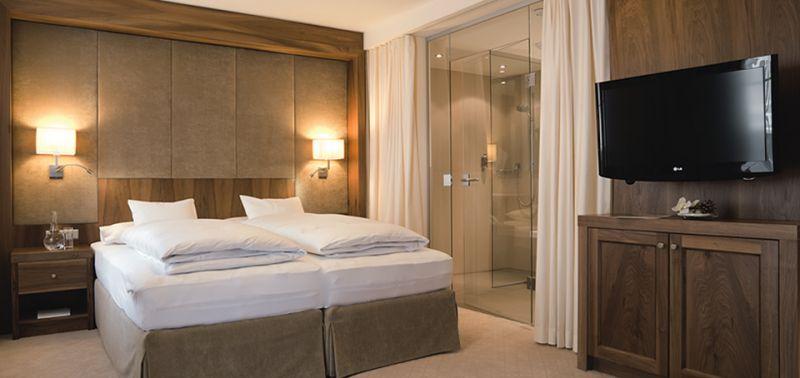 Double room deluxe ((45 кв. м): балкон, спальня с гостиной зоной, ванная комната с ванной и душевой кабиной, гостевой туалет. Возможно объединение с номером категории Single room grand lit и Double room grand deluxe.)
