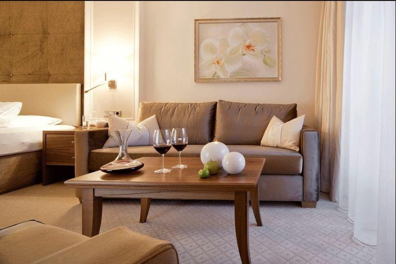 Junior suite ((60 кв. м): прихожая, 2 спальни (одна – с гостиной зоной), 2 ванные комнаты (одна – с ванной и душем, вторая – с душем).)