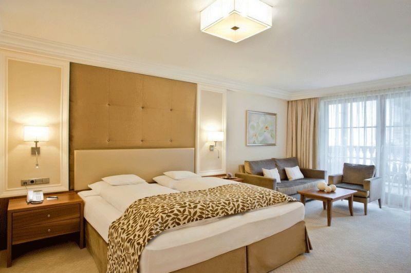 Suite Imperial ((130 кв. м): балконы, гостиная, 2 спальни (одна – с двуспальной кроватью), 2 ванные комнаты, гостевой туалет. Возможно объединение с номером категории Single room grand lit)