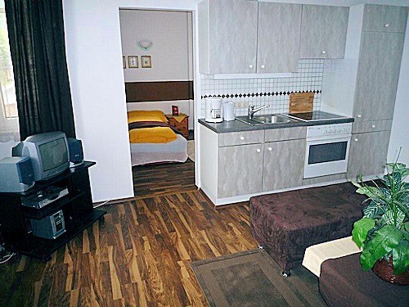 Apartment 6 (75 кв.м. В квартире есть спальня с двуспальной кроватью, полностью оборудованния кухня и терраса. При дополнительном размещении кроватей в квартире способно разместиться 2- 7 человек.)