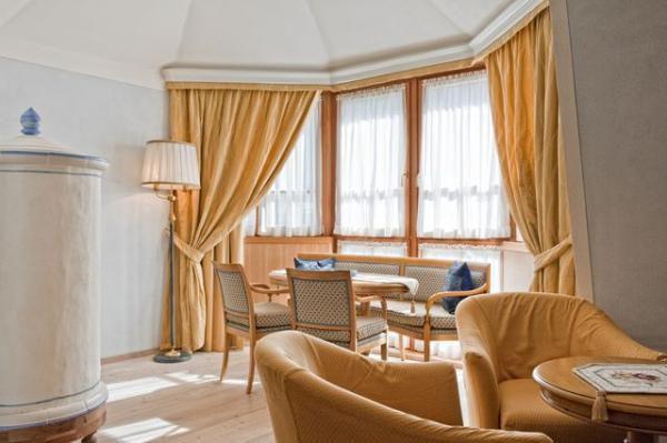 Suite Foletti (ок.38 кв.м) (ванна/душ; гостиная и спальня разделены раздвижной дверью, гардеробная; доступ в Интернет, телевизор с LCD-экраном, SKY-TV, телефон, сейф, мини-бар, фен, косметические принадлежности, халат, тапочки, полотенце для бассейна, велнес-набор.)