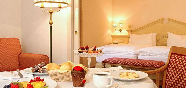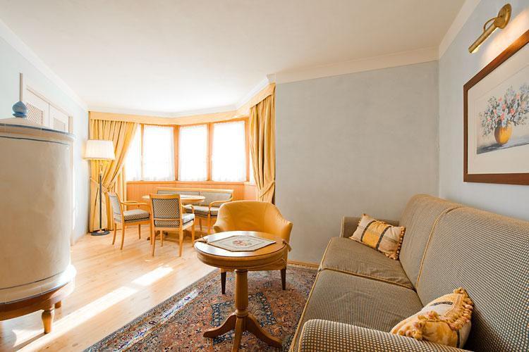 Suite Principi (ок.48 кв.м) (ванна/душ; гостиная (с майоликовой печью) и спальня разделены раздвижной дверью, гардеробная, гардероб в гостиной; доступ в Интернет, 2 телевизора с LCD-экраном, SKY-TV, телефон, сейф, мини-бар, фен, косметические принадлежности, халат, тапочки, полотенце для бассейна, велнес-набор, DVD-плеер, набор для приготовления чая и кофе.)