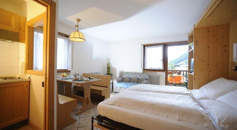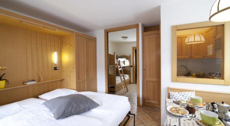 - Two-room Apartment (макс. 4 чел., 33 кв.м, гостиная с обеденным столом, диванами и двуспальной кроватью или раскладной двуспальной кроватью, мини-кухня, комната с двумя или двухъярусными кроватями, ванная комната и балкон, постельное белье, полотенца, набор для уборки на кухне);