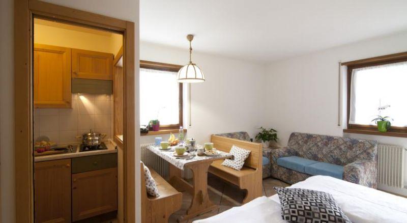 - Studio Apartment (макс. 4 чел., 30 кв.м, гостиная с обеденным столом, диванами и раскладной двуспальной кроватью, мини-кухня, небольшая прихожая с двухъярусной кроватью, ванная комната, балкон, постельное белье, полотенца, набор для уборки на кухне);