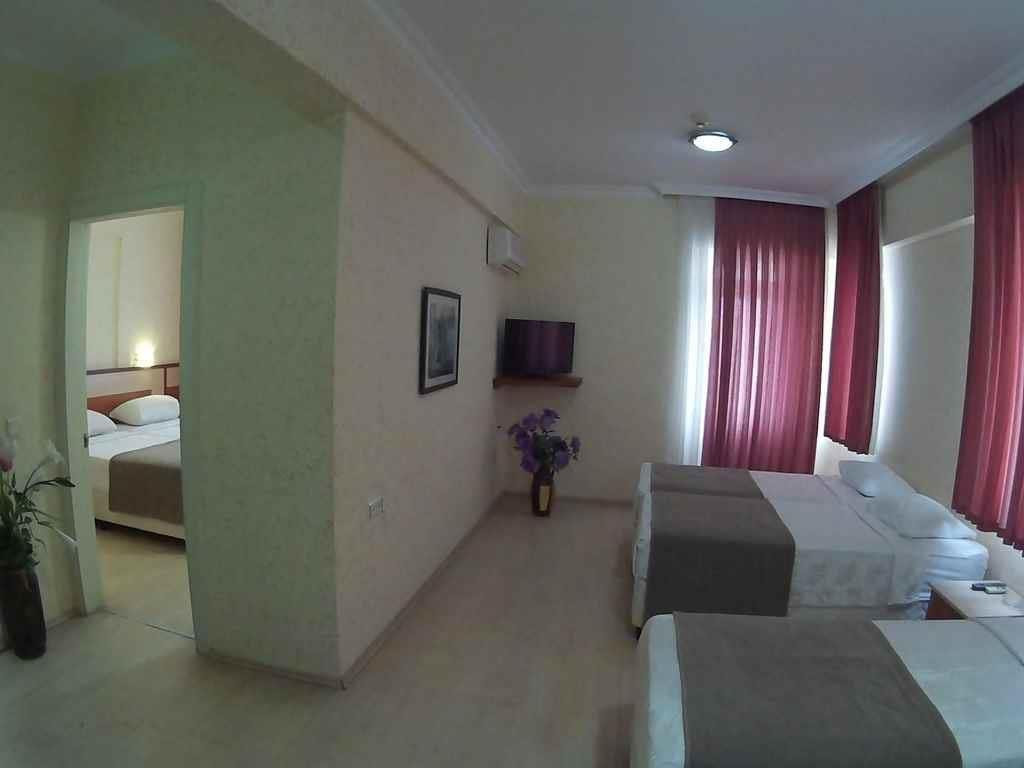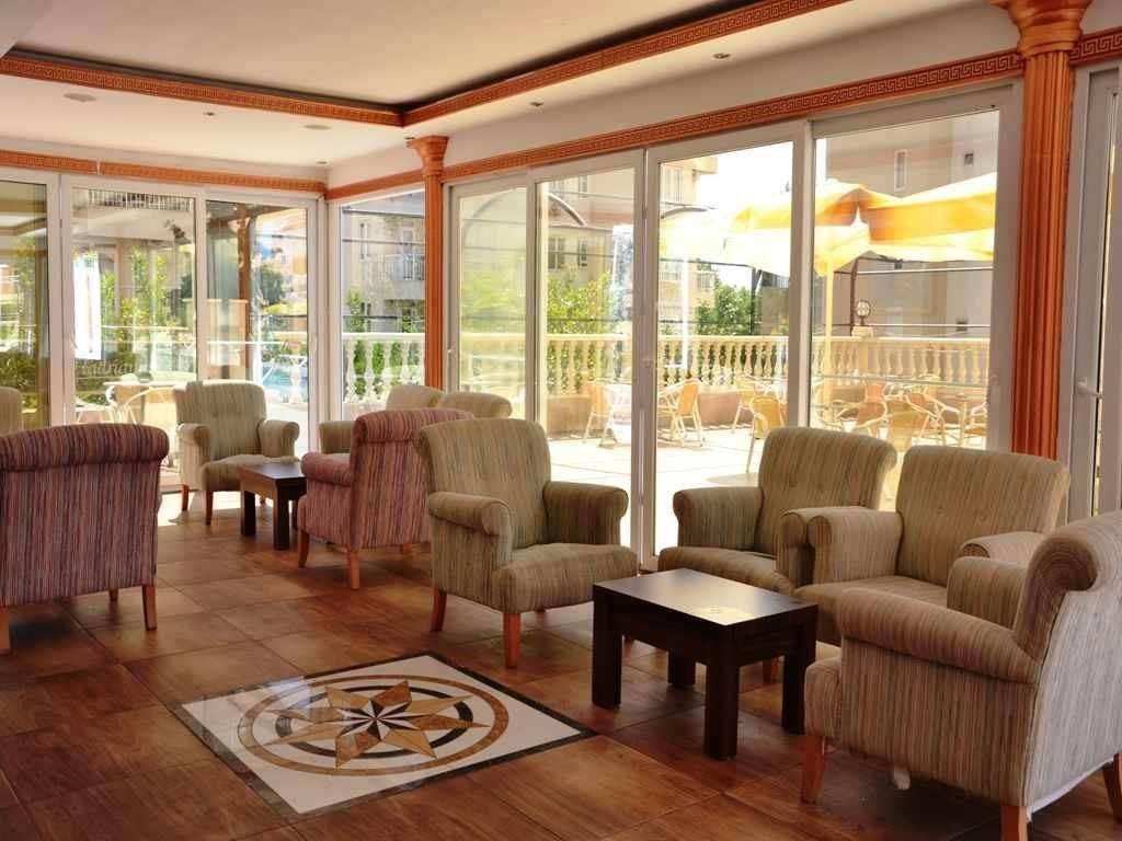 Отдыхали с ребёнком в данном отеле в пик сезона. Температура воздуха до 43, вода, как парное молоко. Отель для спокойного семейного отдыха. Большее количество гостей из самой Турции. Отель очень понравился расположением и обслуживанием. Питание не в изобилии, сравнивая с 5*, но вкусное, хватало всем и всего. Повара молодцы. Бармены тоже наливали пиво до края большого стакана, не жадины). Бассейн большой, с горкой для детей. Что тоже очень порадовало. Вай-Фай в номере ловил, так как жили над рецепцией. На пляж ходит автобус два раза в день, а если не вмещает всех за один рейс, то возвращается за оставшимися отдыхающими. До Мигроса, Бима и Сока «рукой подать», рядом есть аптека и остановка для желающих пошопиться в Террасити. Буду советовать данный отель знакомым и сама сюда вернусь. Отдельное спасибо очень приветливым и доброжелательным ребятам на рецепции. Всегда помогут, проконсультируют, по-русски очень хорошо говорят. Проблем не возникало ни с чем...