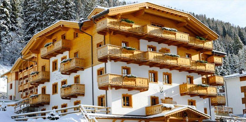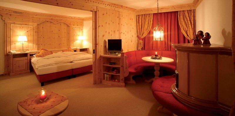 Junior Suite "Rosso & Verde" Ski Run View (ок.32 кв.м) (номера класса полулюкс, оборудованные двумя кроватями и удобным диваном-кроватью; из всех трех номеров открывается вид на канатную дорогу Spinale, лес, лыжный склон и гору Прадалаго вдали; номер 101 "Rododendri" расположен на первом этаже и отличается от других небольшой лужайкой и отдельной ванной комнатой с гидродушем Teuco; номера 201 "Larici" и 301 "Galli Forcelli" расположены на втором и третьем этажах соответственно, имеют большие балконы на северной стороне, ванную комнату с гидрованной Teuco и гардеробной; возможно размещение двух-трех человек.)