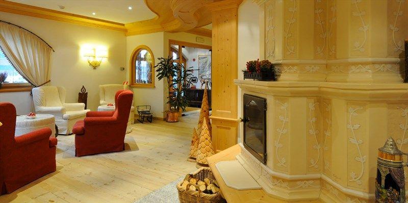 Comfort Suite "Giallo & Blu" (ок.41 кв.м) (номера, оборудованные спальней с двуспальной кроватью и гостиной с возможностью установки двух дополнительных кроватей; особую атмосферу тепла и комфорта придает майоликой печь желтого и синего цвета, украшенная вручную символами комнаты; все номера выходят на северо-западную сторону, имеют два больших балкона, один выходит на север, другой — на запад; балконы освещаются солнцем во второй половине дня, с них открывается вид на канатную дорогу и склон Spinale, часть города и горы Панкуголо и Прадалаго; просторные ванные комнаты с окнами оснащены туалетом-биде, отдельной ванной, гидродушем Teuco и раковиной, что позволяет пользоваться ими одновременно; возможно размещение от двух до четырех человек.)