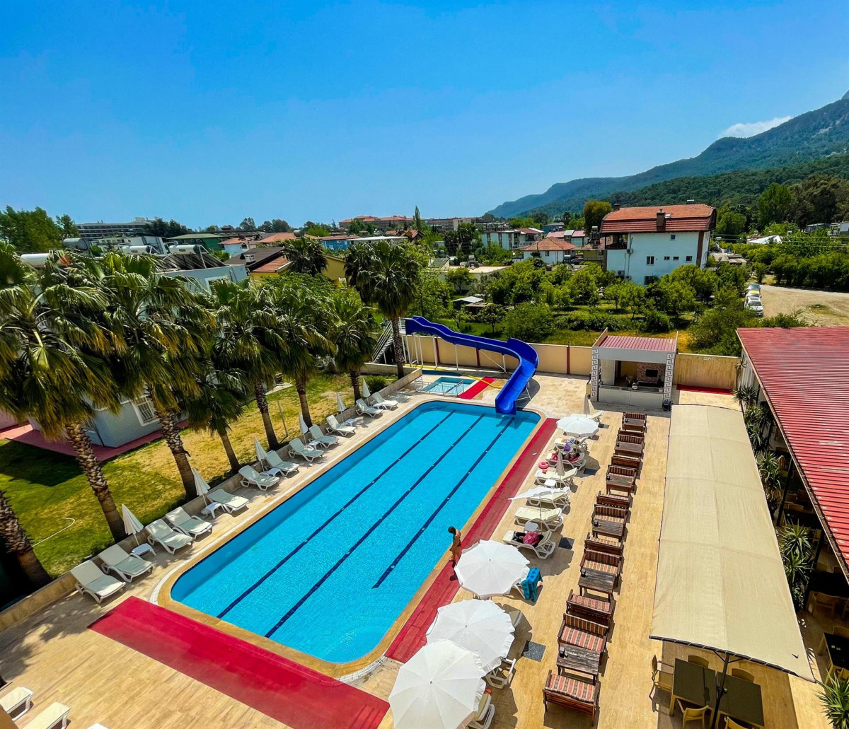 Отдыхали вдвоём с мужем в первой половине июля. Из минусов отеля - выдали номер на 5м этаже (мансарда) - номер был отвратительный с низким давящим потолком (210 см), душный, оснащение и отделка хуже 3-звездочных отелей в Анапе: убитый ламинат, кривые потолочные панели, санузел в котором всё просится на мусорку и т.д. И бонусом для 5 этажа тесный, душный и задумчивый лифт (люди со 2го и 3го этажа ходили пешком, чтобы не страдать). После покупки экскурсии у Анекса, с помощью представителя, переселили в более менее нормальный номер на 1 этаже. По питанию средний уровень - брали часто картофель фри, овощи, некоторые сыры, арбузы и т.д. Мясные изделия как обычно в недорогих турецких отелях были какие-то странные, очень низкого качества, какая-то соевая колбаса, соевые котлеты и прочее "недомясо". Соки и лимонады пить невозможно, по вкусу как самые дешевые типа "красная цена" или "инвайт" 90х годов. Из напитков понравилось только пиво и кола. Пару раз не было свободных столов. Взрослый бассейн обычно был недоступен в удобное время, т.к. с утра уже "самые умные" занимали небольшое количество лежаков своими полотенцами. Морской пляж понравился, ходили и купались каждый день. Экскурсию брали не дешевую обзорная комбо на полный день на двоих $190: гора Тахталы с подъемником, рыбалка (радужная форель), обед, яхта и в другой день приличный хамам в подарок - всё понравилось, сама программа, трансфер и гид. Территория отеля небольшая, но с уборкой проблем нет. С местным магазинчиком справа по пути на пляж тоже не сложилось, к примеру, мороженое 2 шт. 4 доллара, даёшь купюру 5 долларов и продавец даёт сдачу 10 лир, хотя курс 1$= 40 лир или хотя бы 30 за удобство, но никак не 10. В лавке с фруктами неадекватные цены, в 3-5 раз выше, чем в Казани. Торговаться можно, но это напрягает и в разы дешевле всё равно не продадут. Поставила бы отелю оценку 3, но с учётом состоявшегося переселения ставлю 4.