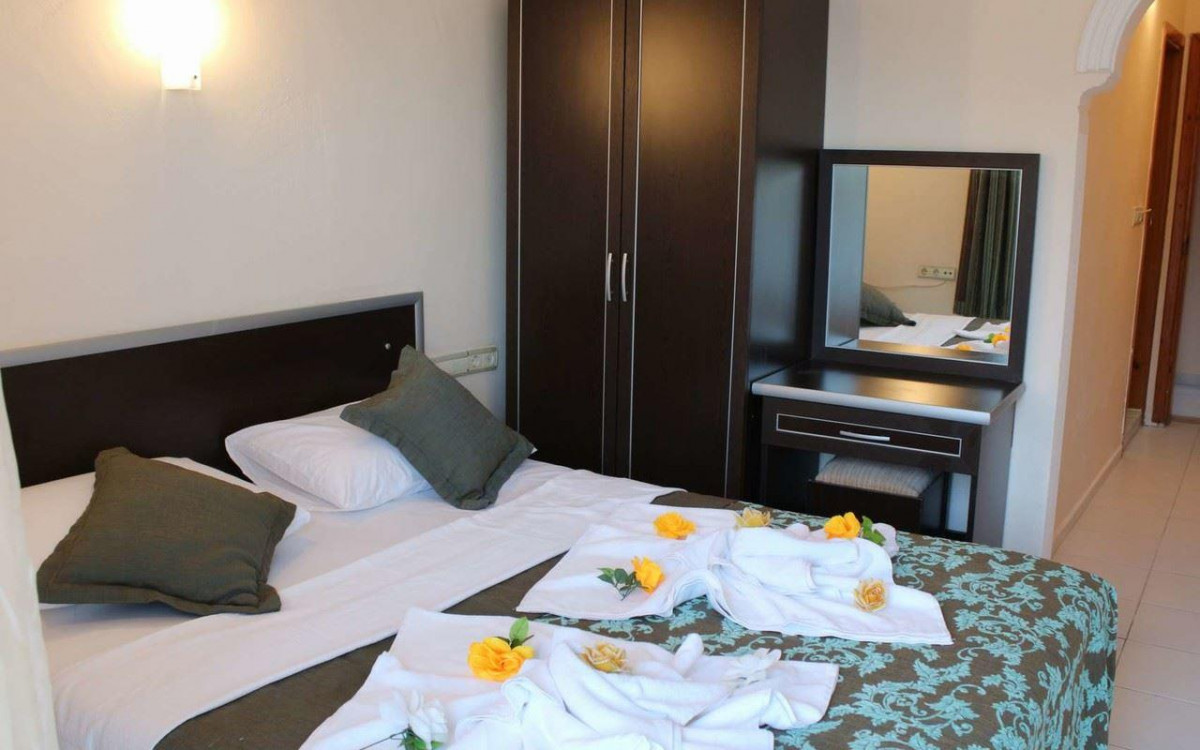 Вчера вернулись с отдыха из этого отеля. Это был первый визит наш за границу и мы очень разочарованы. Пишут что у этого отеля 4* , пожалуйста не верьте, этот отель еле еле дотягивает до 3*… на 4 день отпуска у нас ни разу не убрались, пошли ругаться на рецепшен и после этого только начали уборку.. Персонал очень приветливый, вообще турки-очень добрые люди, но самый главный минус-это еда…абсолютно нечего есть, это не шведский стол-это турецкая столовка , с минимум выбора, из фруктов-только один арбуз, его ели на завтрак, обед и ужин, один раз дали яблоки и апельсины-все на этом… за 10 дней 3 раза дали кашу ( очень мечтали поесть нормальной каши на завтрак и суп), один суп непонятная жижа, все со специями, абсолютно не вкусная еда… выбора нет, зато каждый день картошка-фри… на обед, завтрак и ужин, мы были голодные…. Впечатление отвратительное… об отеле, первый и последний раз в таком низком уровне. Сама по себе Турция прекрасна, очень добрые люди Миша и Дима из Гинза тревел… все было прекрасно, если бы не этот отвратительный отель… детям есть будет там нечего… имейте ввиду, кто едет с детьми…. Много салатов лишних и куча соусов( кому они нужны?) дайте лучше горячее нормальное.. Вся еда масляная не вкусная со специями.