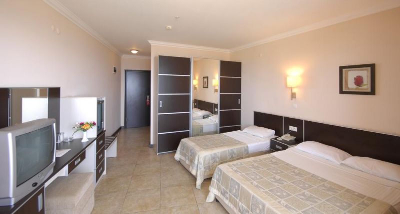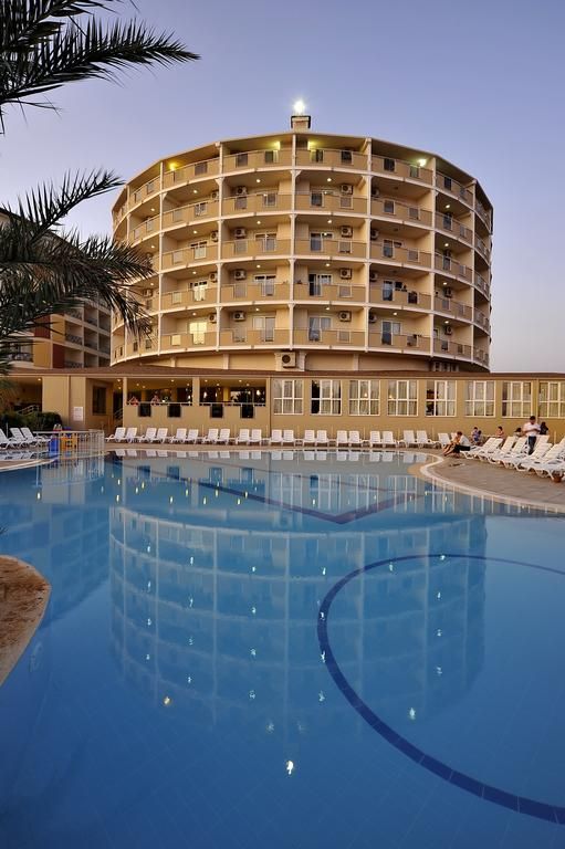 Отдыхали в этом отеле большой компанией (6 человек, взрослые) с 13 по 22 мая, несмотря на начало сезона, заселен был почти полностью. Питание на 5 из 5: всегда выбор мяса (говядина, индейка, перепела, курица), постоянно какая-нибудь рыба (на гриле, на пару и пр.), очень вкусные гарниры, свежие овощи и овощные закуски. Сладости на любой вкус. Фруктов разнообразие небольшое, но были всегда груши, яблоки, апельсины, мушмула. Размещение: приехали в 12 дня, заселили как только прибрали номер (где-то через час), браслеты одели сразу, то есть пообедать мы успели. Пляж рядом (через переход под дорогой) хороший, но не очень большой. Пологий заход в море, хороший чистый песок. На пляже бар с едой и напитками (пиво, воды), ребята на баре веселые, сколько скажешь - столько нальют (это касается всех баров этого отеля, а их три). Бассейн небольшой, но чистый, одна горка, рядом бар (круглосуточно работающий), зонтики, шезлонги (все очень компактно и удобно). Анимации на пляже не было (только музыка играла), в отеле днем водное поло и дартс, а вечером дискотека. Отель молодежный, в округе достаточно шумно допоздна, поэтому с маленькими детьми будет некомфортно.