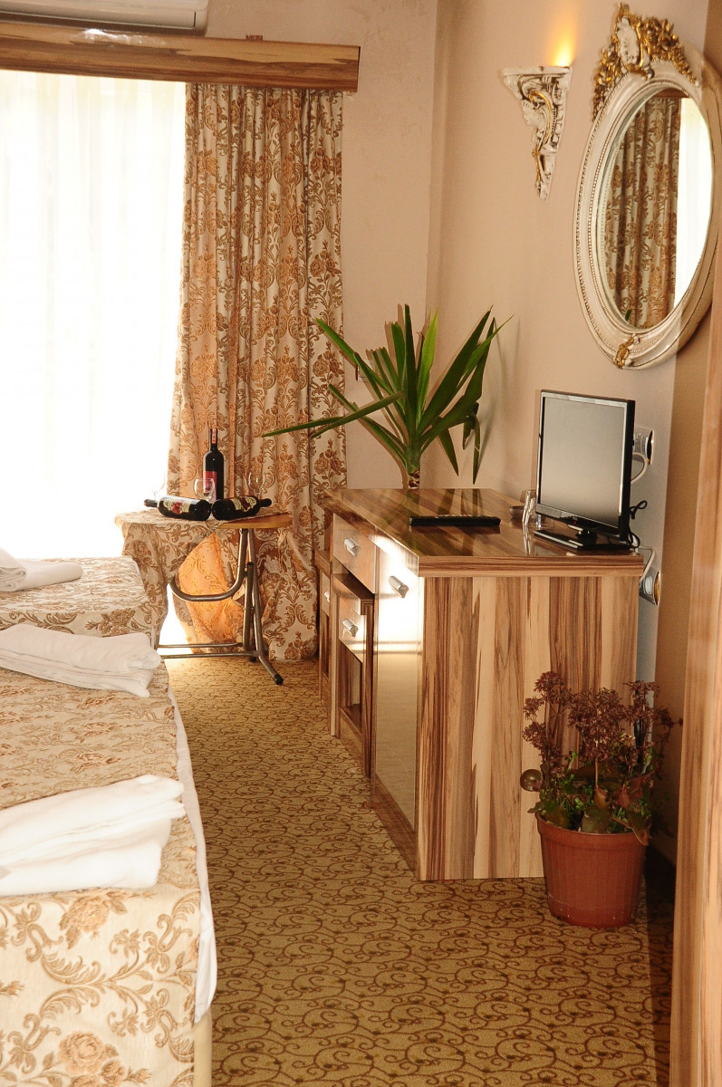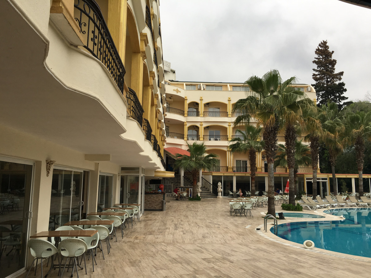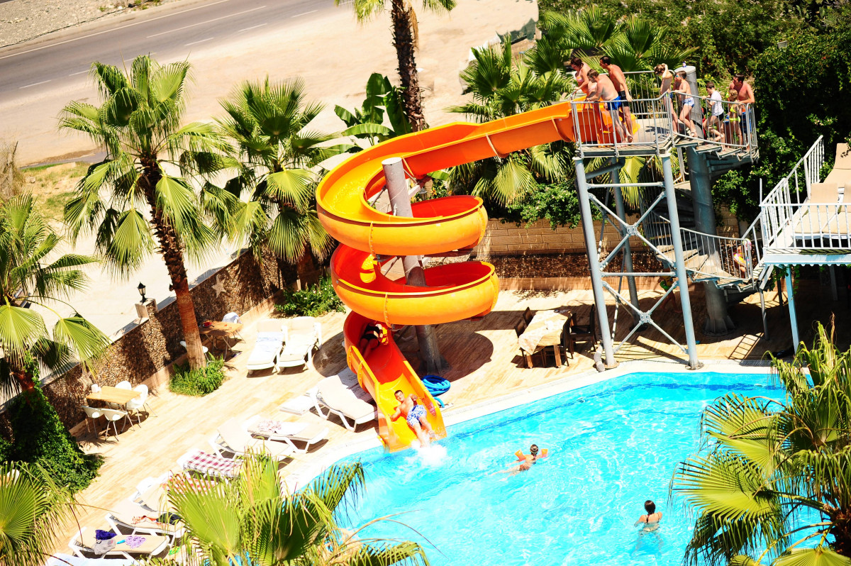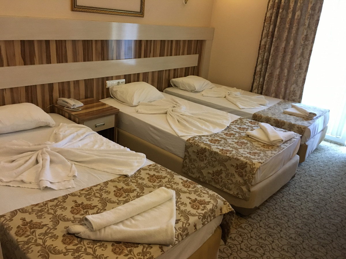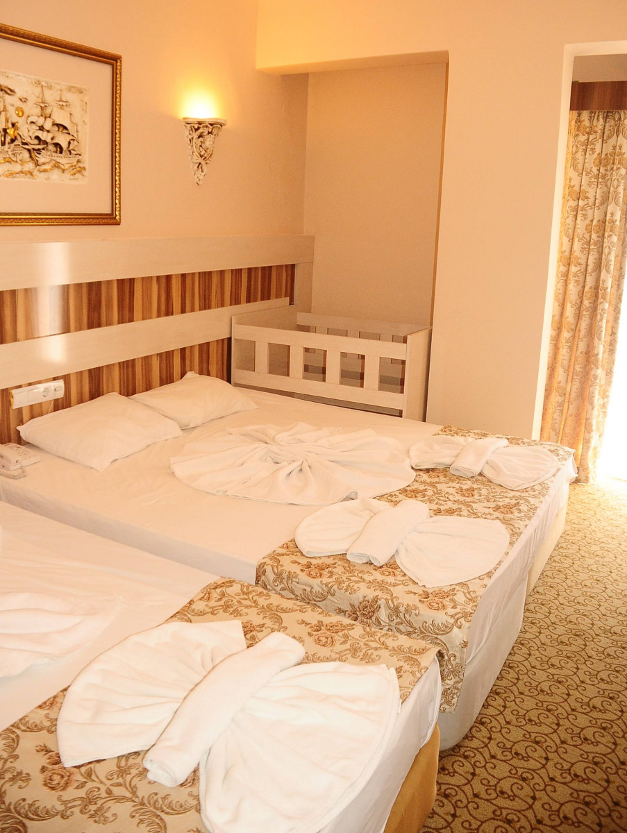 Добрый день! Отдыхали 2 недели в данном отеле вдвоем с ребенком. Я специально искала отель с детской анимацией. Недалеко от моря - вот были главные критерии к отелю. Прилетели мы 26 июня, в номер нас заселили в течение часа по приезду. Номер, в принципе, нормальный, нечего критичного нет, уборка номера была каждые 2-3 дня, либо по запросу дополнительно. Как оказалось позже, нам с номером очень повезло, т.к. наши окна выходили на горы и не было слышно шума машин и буйных туристических ночных тусовок. Про анимацию сказать особо нечего, можно сказать, что ее вообще не было. Аниматор девушка, которая еле говорила на русском языке, вела аква-аэробику в бассейне, более похоже просто на шлепки по воде. И в 21:00 детскую дискотеку, пару танцев, и все на этом. Была в бассейне 1 водная горка, которая работала 1 час в сутки! После 19:00 в бассейн заходить и плавать уже нельзя! Теперь про еду. Еда в данном отеле очень скудная и однообразная изо дня в день. Такое ощущение, то, что не доели вчера, они перерабатывают и дают это сегодня. Что-то вроде были отварные макароны на ужин, а на следующий день на завтраке они же, но уже в йогурте. А так каждый день курица, яйца, сосиски, колбасы и рыба. На ужин стандартно арбуз, из фруктов больше нечего. Каждое утро бедный мальчик жарит блины, в обед тетенька жарит гезлеме, очереди, конечно, космические, каждую пятницу, праздник пятницы, жарят шашлык возле бассейна, играет национальная музыка и танцуют восточные танцы. На территории всего 1 бар! Пиво там есть, его привозят 2 раза в день, а заканчивается оно примерно за 1-2 часа, кто не успел, тот опоздал. Ну, а виски, джин и т.д. без стеснения разводят водой при тебе. Из критичных недостатков: до пляжа далеко идти! Идти через трассу, где светофоры пешеходные не работают, проходить там очень страшно! Сама территория пляжа находится возле кладбища! То есть проходишь кладбище и вуаля - наш пляж. Кстати, нашли наш пляж, только через пару дней. Еще там ужасный вай-фай причем платный, работает еле-еле, часто вырубают свет во всем отеле. И данный отель не 4 звезды, а только 2!