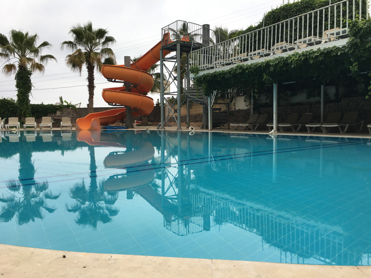 Лучше поздно! 28 июля 2021 года дата нашего заезда в отель! Впервые отдыхали в Турции и вообще за границей. Все друзья говорили, что слетав в Турцию один раз, на отечественное море не захочется, но это видимо не в моем случае! Отель находится на трассе! Постоянно куча машин, чтобы пройти к морю нужно все обойти. До моря 20 минут. Территория маленькая. Сам отель тоже не понравился: покрытие полов старое, телевизор древний, шторы в номере не глаженные. Номера маленькие, но чистые, убираются не каждый день, полотенце не меняли ни разу. В номерах нет даже стаканов. Воды в номере тоже нет. Кулер с водой только на улице возле бара и больше питьевой воды больше нигде нет!!! Бар только один на улице. Бассейн тоже один, заявлено 2. Горки есть. Еда холодная и выбор минимальный, рыбного и мясного почти нет, на перекус печеньки, самое ужасное по еде летают мухи!!! Из фруктов арбуз, яблоки. Из выпивки пиво нормальное, вино кисляк, других напитков не было. Персонал в отеле вечером отдыхает вместе с отдыхающими. Ни за что не рекомендую.
