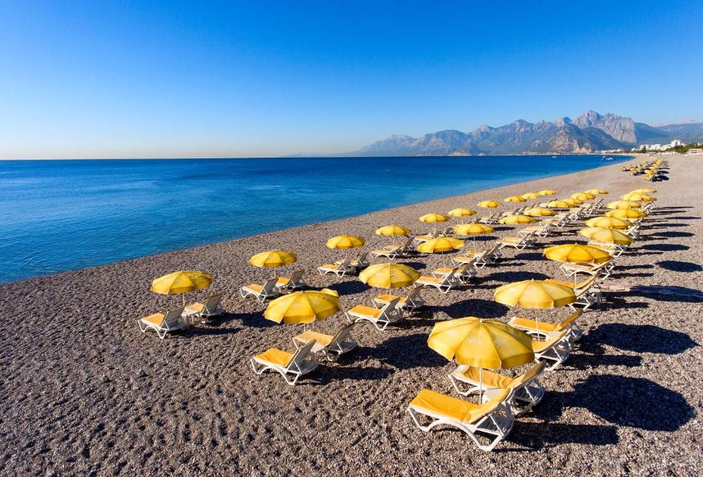 Были в этом отеле с 03.07.2025 по 10.07.2025. Были вместе с женой. Приехали в отель в 10-00. Нас сразу заселили. Отель не совсем новый, но все было чисто и уютно. Территория вся зеленая. Номер дали 325 на 3 этаже с боковым видом на море и пляж и с видом на территорию и парк отеля. Номера чистые, белье меняли за 7 дней 1 раз. Минибар пополняли каждый день. Возле бассейна всегда свободные лежаки. На пляже отеля всегда тоже свободные лежаки и зонты. Занято было только одна треть. Не нужно бежать с утра занимать. Каждый час до пляжа от отеля ходит автобус, пешком недолго идти, минут 10 через красивый парк по набережной. На пляж спуск на общественном лифте, к нему дорожка идет от отеля. Сам отель находится выше пляжа метров на 30-40. На завтраки, обед и ужин никогда не было очередей, всегда были свободные столики. Много кошек на улице, которые всегда поесть выпрашивают. Официанты их пытаются разгонять бутылкой с водой, брызгают, но те шустрее официантов, бесполезно!))) Меню разнообразное, голодными точно никто не останется. Правда фруктов можно было бы и побольше. В основном всегда были арбузы, дыни, сливы, апельсины, абрикосы, яблоки и иногда персики. Вино белое и красное местное, неплохое. Крепкие напитки не пробовали. Расположение отеля очень хорошее. В центре. Кому на шоппинг, то точно сюда. Недалеко крупные моллы как 5м Мигрос и Дарк Анталья. Доезжали до них за 150 лир (300 рублей), это минимальный тариф на такси в Анталье. До Антальи Молл доезжали минут за 25-30 за 650 (1300 рублей) лир. Но там все те же бренды как и в Дарк Анталье и 5м Мигросе. Рядом аптек много. Самый выгодный обменник на площади возле башни с часами, где старый город начинается. Второй от первого обменника, метрах в 50 дальше, курс на 20-30 лир выгоднее. Так же недалеко от отеля Океанариум находится. Пешком минут 10. С детьми в этот отель особо не стоит ехать. Анимации практически нет. Детям скучно будет. Тихий спокойный отель. По вечерам только с 21-00 до 23-00 из соседнего Риксоса всегда музыка гремела. На ресепшене тоже всегда быстро на просьбы реагировали, есть русскоговорящие. Поэтому в этот отель стоит ехать, несмотря на небольшие недостатки. Но если их не искать, то отдых всегда и везде будет отличный!