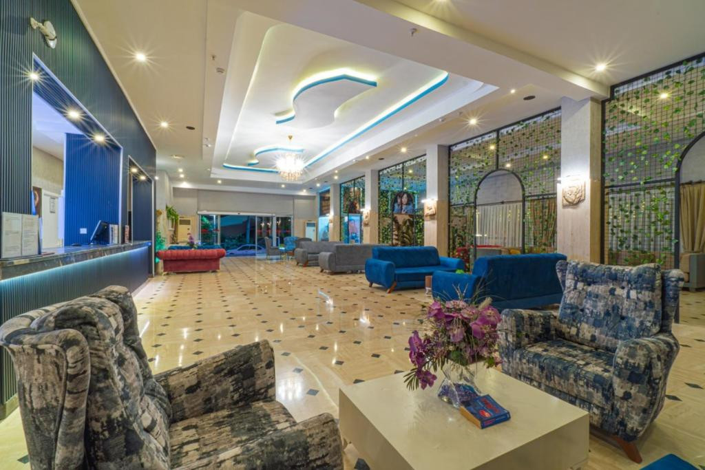 Отдыхали в этом отеле c сестрой с детьми. В целом впечатление осталось смешанным — есть как очевидные минусы, так и приятные моменты, за которые хочется сказать “спасибо”. Начну с заселения. Сначала нас поселили в номер с потрясающим видом на море — правда, сам номер был старый: старая мебель, сантехника, очень слабый кондиционер. Жарко было настолько, что ночью было невозможно уснуть. Мы обратились на ресепшен, и нас переселили ближе к бассейну и анимации — номер оказался скромнее, но с отлично работающим кондиционером, и это спасло. Порадовало, что сотрудники пошли навстречу: в качестве извинения нам предоставили бесплатный Wi-Fi, вино и фрукты в номер. Это приятно. Номера в целом — уставшие. Отелю явно не помешал бы ремонт. Мебель и техника давно требуют обновления. Зато в первом номере была большая удобная кровать и очень красивый вид с балкона. Новый номер — проще, но спать в прохладе было куда важнее. Питание — очень скромное. Это точно не тот случай, когда приезжаешь на «всё включено» и ешь без остановки. Я даже немного похудела — для меня это оказалось плюсом Основной рацион — овощи, рис, булгур, немного фруктов (арбуз, яблоки, оливки). Курицу и рыбу готовили неплохо, но разнообразия не хватало. Сосиски иногда появлялись, но были пересушены. Напитки в автоматах — разбавленные, особенно соки. Но в барах можно было взять нормальную колу, фанта или пепси. Пиво — приемлемое, вино — не понравилось. Пляж и море. Пляж — небольшой, лежаки не в лучшем состоянии. Море — в первый день просто чудо! Чистейшее, тёплое, с лёгкими волнами — кайф! Даже мой 4-летний ребёнок с удовольствием купался. Но уже на следующий день море немного штормило, и, к сожалению, на берег принесло мусор. В последние дни вода была грязной, плавали уже с осторожностью. А в последний день купаться было и вовсе опасно — огромные волны, несколько человек получили травмы. Будьте осторожны при шторме. Бассейн и лежаки. У бассейна не так много лежаков, особенно в тени. Но при желании можно найти — я дважды спокойно находила, просто немного понаблюдав за отдыхающими. Главное — быть внимательным. Персонал — отдельный плюс. Очень доброжелательные сотрудники, особенно к детям. Один из барменов даже угостил меня коктейлем просто так — за улыбку. Анимация ненавязчивая, но активная. Нам это подходило — отдыхали спокойно. SPA и массаж — восторг! При отеле работает небольшой хамам и массажный кабинет. Не супер-люкс по антуражу, но сам массаж — просто фантастика. Бесплатный ознакомительный сеанс по приезду, дети тоже наслаждались процедурами. Я отдельно хочу поблагодарить массажиста Мустафу — потрясающий специалист, тонко чувствует тело, работает аккуратно и мощно. Очень рекомендую! Рядом с отелем — вся инфраструктура. Магазины, мороженое (особенно вкусное дубайское, брали каждый вечер), аптека. Всё рядом. Приятный плюс — в Турции отлично работает любой тип банковских карт, никаких VPN и ограничений, как, например, в России. Экскурсии. Обязательно советую съездить в Памуккале — невероятная красота! И озеро Салда — фото получились просто сказочные. Общий вывод: Отель не новый, и это чувствуется. Но персонал старается, море в спокойную погоду — волшебное, атмосфера уютная, а отдых получился всё же приятным. Если не ждать роскоши и быть готовым к скромным условиям — можно провести хороший 