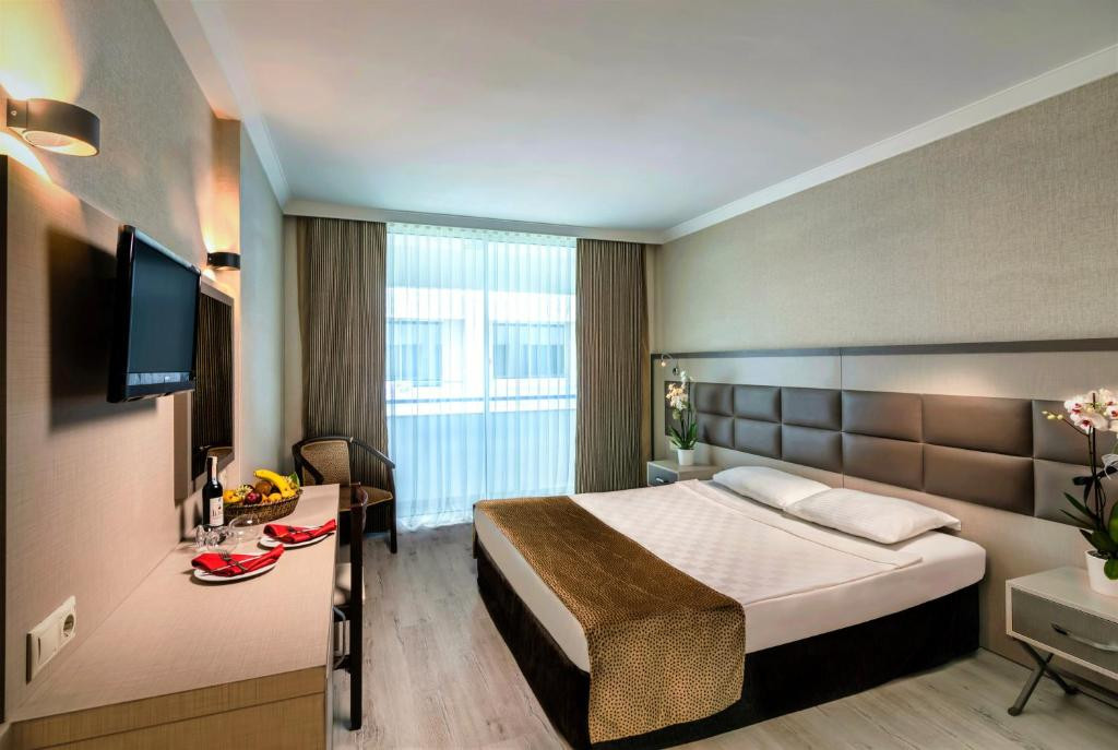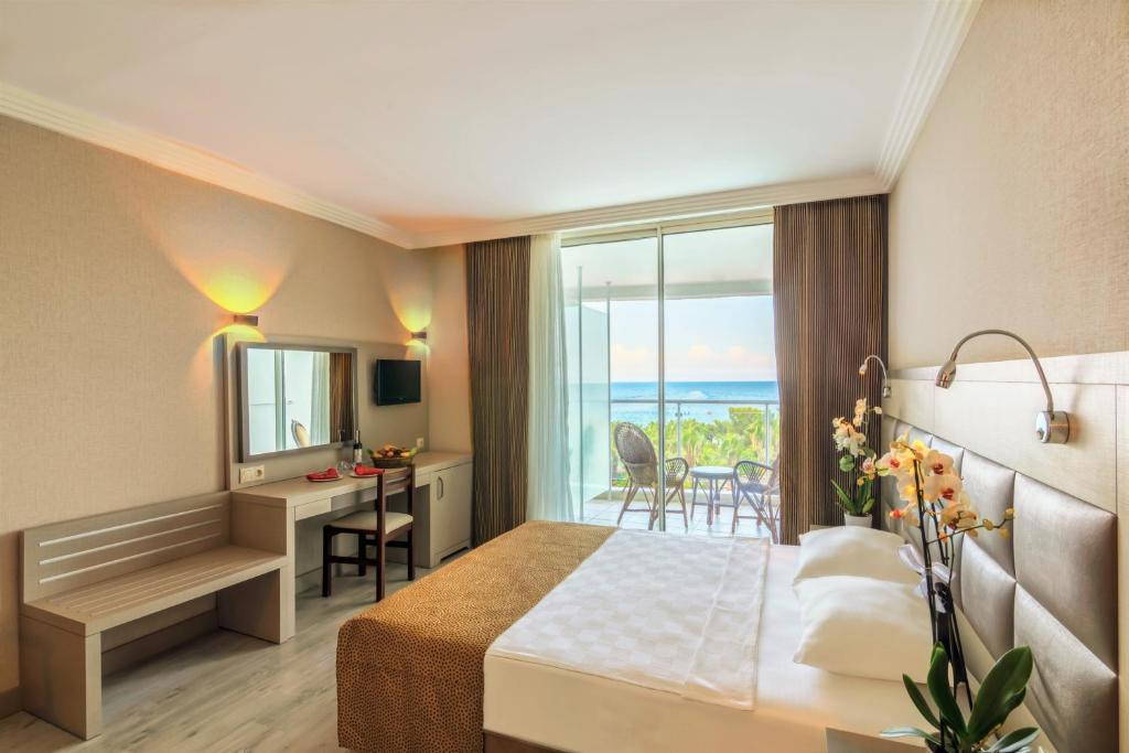 Отдыхали с 12.09-19.09. Хороший отель , номера свежие , не убитые , ванная чистая , все красиво чисто , уборка стабильно каждый день . Еда очень даже ничего , фрукты каждый день - яблоки ,апельсины , дыни ,арбузы ,сливы,виноград , нектарины , персики. Мясо :курица ,индейка , говядина ,немного рыбы ( что-то типа морского окуня) в разных исполнениях. Практически каждый день что-то добавляли на шведском столе . Единственный минус для нас - пахлава один раз в неделю . Мест много ,столов хватает. Бар супер , алкоголь на разный вкус - коньяк,виски, текила ольмека , вина , пиво , красивущие коктейли делает турок в баре . У пляжа хороший бар и снек бар . Разнообразие каждый день ! Пляж хороший , чуть левее от пирса вход приятнее . Море теплое , купались и рано утром , и поздно ночью . На ресепшен русскоговорящие , на любую проблему найдут решение .