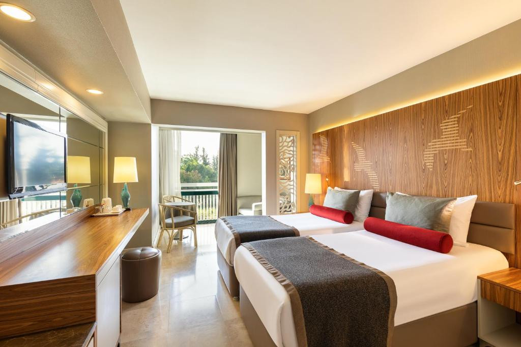 Отдыхали семьей из 4 человек (дети 6 и 5 лет) в июне 2018. Море теплое. Хороший спокойный отдых. Много немцев-пенсионеров, все неспешно. Вечером хорошая анимация, за 2 недели не повторялась: акробаты, мюзикл, детский спектакль. Смотрели даже дети с удовольствием. Дети вечером бежали на мини-диско, хорошее отношение персонала к детям. В ресторане всегда есть место. Еды много (мясо, рыба, овощи, фрукты - перечислять нет смысла), разнообразная, не всегда вкусная, на мой взгляд, но это субъективно. Ходили гулять до развалин, пришли к выводу, что у нас самый лучший пляж. Для детей проводили мастер-классы, мои тоже ходили пару раз. Детских горок в бассейне нет. Для детей часть взрослого бассейна сделана совсем мелкой с постепенным углублением. Мои там бывали редко, в основном на море. Мини-бар периодически забывали пополнять, нас не напрягало: воду и напитки можно взять в баре. Уборка по качеству терпимая, лебедей делали. Полотенца пляжные меняли бесплатно, но в определенные часы в определенном месте, не рядом с пляжем, но это мелочи. При отъезде заплатили за поздний выезд без проблем в любой валюте. С удовольствием бы вернулась в отель из-за пляжа, ощущения отсутствия соседей и анимации, но цены поднялись на 50% по сравнению с прошлым годом.