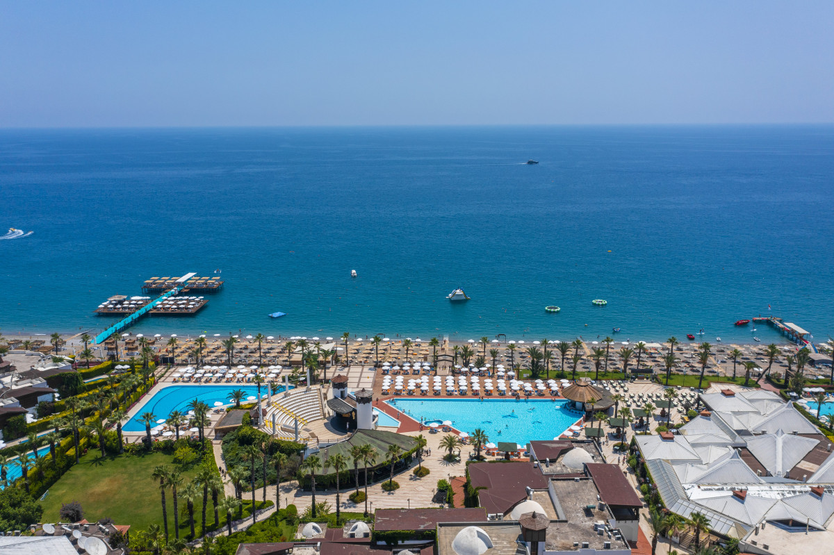 Отель супер. Огромная территория, чисто, все в цветах. Кухня прекрасная, каждый день шеф повар выходят к гостям и смотрит в основном ресторане. Есть ещё кофейня типа Starbucks, место, где готовят шаурму и бургеры, отдельно дорадо, баранина и креветки, кондитерская с пироженными и мягким мороженным, отдельно Детокс кафе. Из алкоголя Белис и Балантайс оригиналы, остальное турецкие спир напитки. Активная анимация, чудесная детская комната, была пенная вечеринка, вечеринка в белой одежде. Единственное номера маленькие, но чистые, есть номера 7.. корпус А. Жуки, пишут тараканы, есть это цикада, они живут на деревьях, в помещения не заползают. На территории есть ежи. Сюда люди ездят годами, так любят отель.