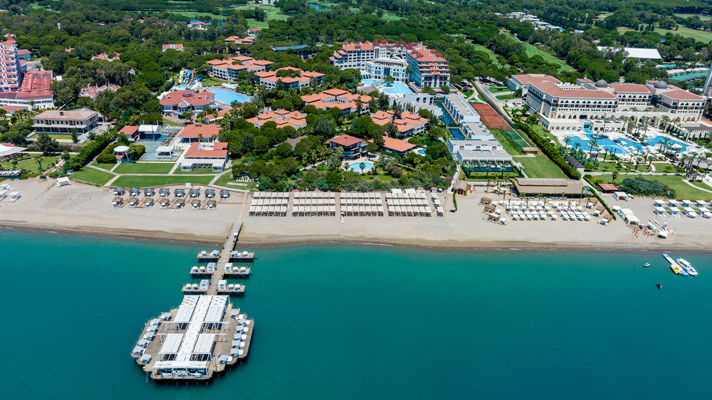 Мы сейчас в отеле (24 июня-2 июля 2024). Отель шикарный. Территория огромная и очень зеленая, а главное кругом сосны! По фото я этого не отметила. Нас 4 с 2-мая взрослыми детьми. Для нас идеально подошел lale suite. Это двухкомнатный двухэтажный номер с двумя ванными комнатами. Фактически два номера отдельных. На каждом этаже огромный балкон. Номер огромный, очень чистый и удобный. Кондиционер отлично расположен, не дует на кровать , когда лежишь (он как раз от кровати дует). Кровати очень удобные, постельные принадлежности очень удобные , спать приятно. Еда отличная , разнообразное и мясо и рыба, печеная картошечка, всякую пасту с разными наполнителями делают прямо при тебе. Всё вкусно. Арбузики спелые. Два больших бассейна. Лежаков много, но сложно занять бывает. Мы выбираем место около пляжа под соснами, там всегда было местечко. Есть платные беседки индивидуальные на пляже и на пирсе с собственным спуском с пирса. Прикольно, но стоит 100 евро в сутки. Как обычно еда есть и в кафе на пляже. Главное очень приветливый персонал, просто душки. Гест релейшинс тоже отлично работают. Все говорят по русски. Русских в отеле большинство. Очень дружно играют все в волейбол на пляже. Много теннисных кортов (нам важно было). Дети впервые сказали, что сюда бы вернулись. И тут много семей, которые не первый год приезжают. Из минусов выделила бы скучную вечернюю и анимацию (данс шоу все время), мы больше любим всякие смешные конкурсы, фокусы, но тут какой-то закос под пафосность. И вот этих традиционных развлекух у бассейна со смешными конкурсами тоже нет. Но всякие фитнесы на разных штуках в бассейне и даже в море с избытком. Отель однозначно рекомендуем. Ездили с Пегасом. Рейсы выбрали удобные, чтобы не терять дни. Получилось полных 9 дней /8 ночей на 4-х взрослых 540тыс. в одном огромном номере.