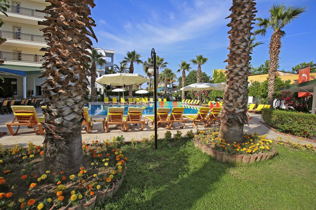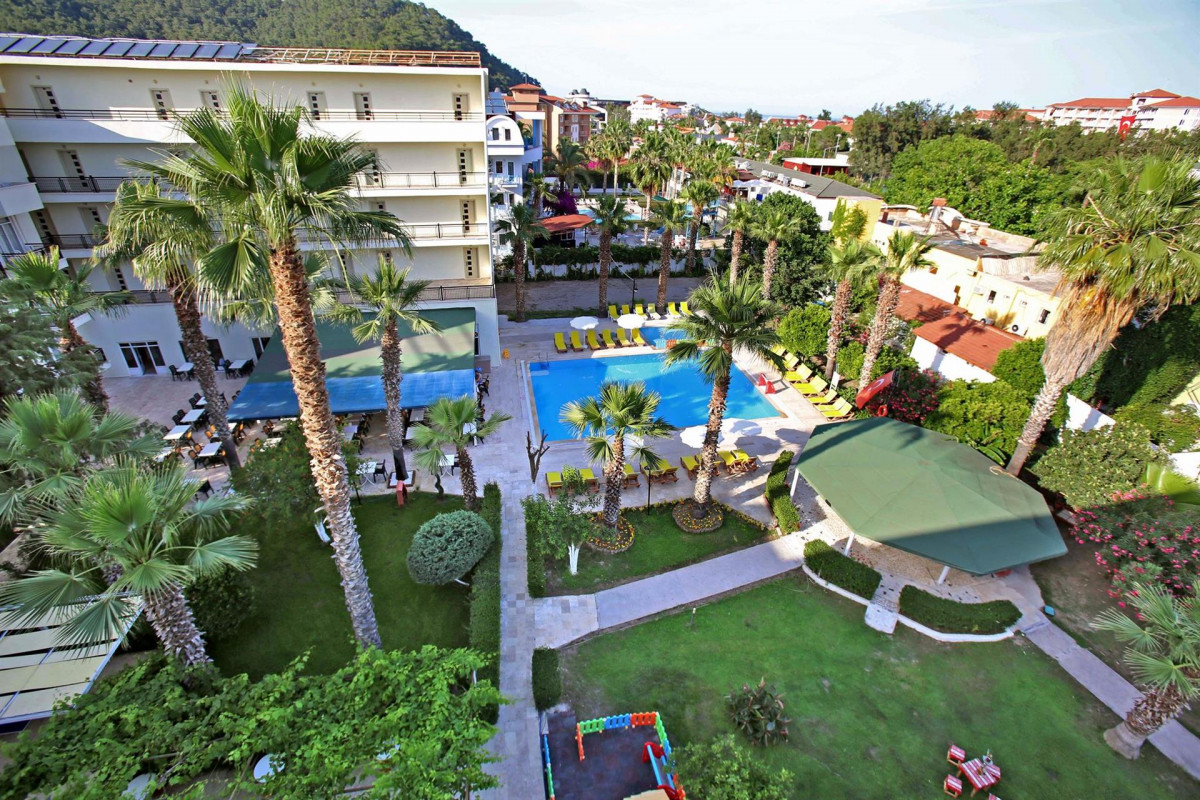 Небольшой уютный отель расположен в курортном поселке Кириш, в 7 км от Кемера, в 65 км от аэропорта, на второй береговой линии от моря. Представляет собой одно четырехэтажное здание.