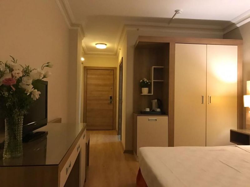 Отличный отель! Впечатления только положительные. Уровень как у четырехзвездочного отеля. Отдыхали там в первой половине июня 2015 года и остались очень довольны. Заселили нас сразу же после того, как мы приехали из аэропорта, позже на ресепшене спросили понравился ли номер. Для тех кому интересно - персонал свободно общается на русском. Номер большой, с двуспальной кроватью, минихолодильником, ТВ-плазмой, чистый и аккуратный, санузел совместный (мыло, шампунь, фен, тапочки прилагались). Сейфом не пользовались, из номера ничего не пропало. Завтрак и ужин очень достойные, стандартный набор: овощи, сыр, хлеб, яйца, много зелени, курица и/или рыба на ужин, из фруктов были только яблоки и апельсины. Бесплатной воды на ресепшене и в ресторане нет, но рядом большой супермаркет, где за 1 лиру можно купить 5-литровую бутылку воды. Бассейн небольшой, но чистый. Пляж в 20 минутах ходьбы от отеля, 3 раза в день на пляж ходит бесплатный автобус, но мы им не пользовались, т.к. вдоль моря тянется парк Ататюрка, утопающий в зелени и цветах, по которому оч приятно пройти утром. Старый город с главными достопримечательностями и портом находится также в 20 минутах ходьбы. Рекомендуем посмотреть шоу поющих фонтанов в центре города, посетить 8-зальный археологический музей (вход 20 лир), прогуляться по Старому городу, съездить на водопады Дюден (вход 3 лиры). Оценка отелю - 5 баллов из 5.