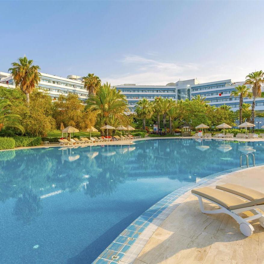 Отель неплохой. Смело можно ставить 4. Огромная территория, гуляли везде, ходили в соседний отель(территорией которого можно пользоваться), показалось что там лучше питание. Кофе точно был вкуснее. Питание плюс минус каждый день одно и тоже. В целом неплохо, но повара безбожно пережаривают рыбу, курицу. За 6 ночей что мы были 1 раз были морепродукты( креветки, мидии, кальмар), которые есть было невозможно, просто были безвкусные. Также в один вечер подавали роллы, которые были очень солёные. Из еды очень понравился традиционный чечевичный суп, говяжий язык с грибами и картошка фри. Остальное было на 3 . Выпечка разнообразная и в общем то вкусная, пирожные все очень сладкие. Из фруктов были яблоки, груши, бананы, сливы, арбуз, дыня, виноград. Днем и вечером мороженое на вес. Снек бар: бургеры были вкусные(котлета прям мясная), пицца, салаты, фри, пережаренная курица, мороженое в упаковке. В барах 99% бармены не понимают по русски. По началу это напрягало, потом принаровились, вспомнили английский, которого почти не знаем))). Номера: видно что давно все не новое, но все в рабочем состоянии. Горячая вода и напор были всегда. Убиралась 1 раз, но каждый день пополнили мини бар и застилали постель. Из банно-рыльного: шампунь, гель и жидкое мыло. Мочалок, щёток для зубов и пасты не было. Ватные палочки выдавались разово. Всё чего не хватило, слава богу взяла из дома. Фен был хороший, не дохлый. Пиво: только туборг. Вход в море мелкая галька в перемешку с галечным песком; довольно быстро становится глубоко, метров 6. Есть пирс, пользовались им. Пляж большой, лежаков кажется хватало всем. Но было мало столиков к шезлонгам. Сами шезлонги пластиковые с сеткой. Вполне сносно. Аквапарком не пользовались. Анимация - её почти нет. Только вечером и то ориентировано скорее на европейцев. Русских было более 50%, также были поляки, немцы и словаки. Самый сильный минус всех турецких отелей- разрешено курение везде! Ужасно когда ты сидишь, кушаешь, а за соседним столом сидит "паровоз". Ни аппетита, ни желания тут быть. Все-таки считаю цена отеля несколько завышена. Порекомендую ли я отель: скорее нет, за эту цену есть варианты по-лучше.