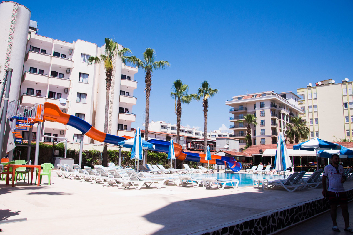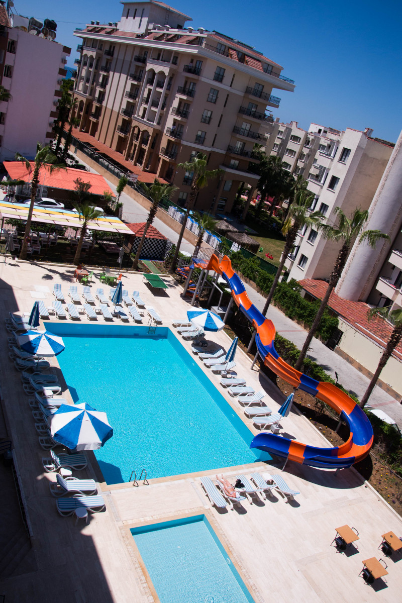 Отдыхаем в этом отеле с приятельницей и двумя нашими детьми. Покупали этот отель, понимая, что он очень бюджетный. Как оказалось не так уж он и плох. Скажу сразу, чтобы не говорили, что слаще морковки мы ничего не видели, так это не так! Номерной фонд отремонтирован, никакой грязи нет и в помине, уборка каждый день. В номерах мебель новая, хорошие матрацы, даже страшненький телевизор не испортил впечатления (за то три российских канала). Есть нюансы, как, например, тесный лифт, тонкие пластмассовые стаканчики в баре, отсутствие детской площадки, нет разнообразия фруктов и сладостей, что в общем то традиционно для Турции. А вообще-то мы получили, то зачем ехали. Это отличное море в 5 минутах пешим шагом, приличное питание, чистая постель, отличные экскурсии за сущие копейки, а так же хорошо загорели и накупались. В отеле есть детская и взрослая анимация. Отдыхом вполне довольны!
