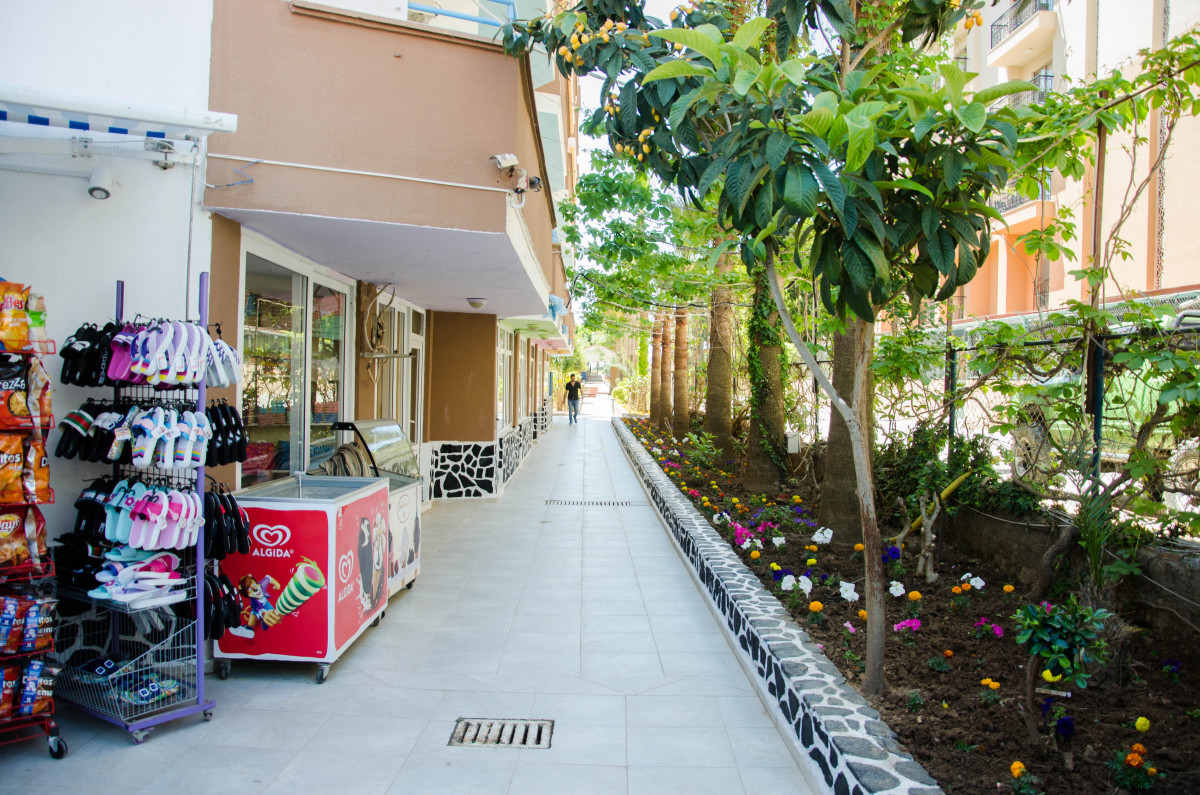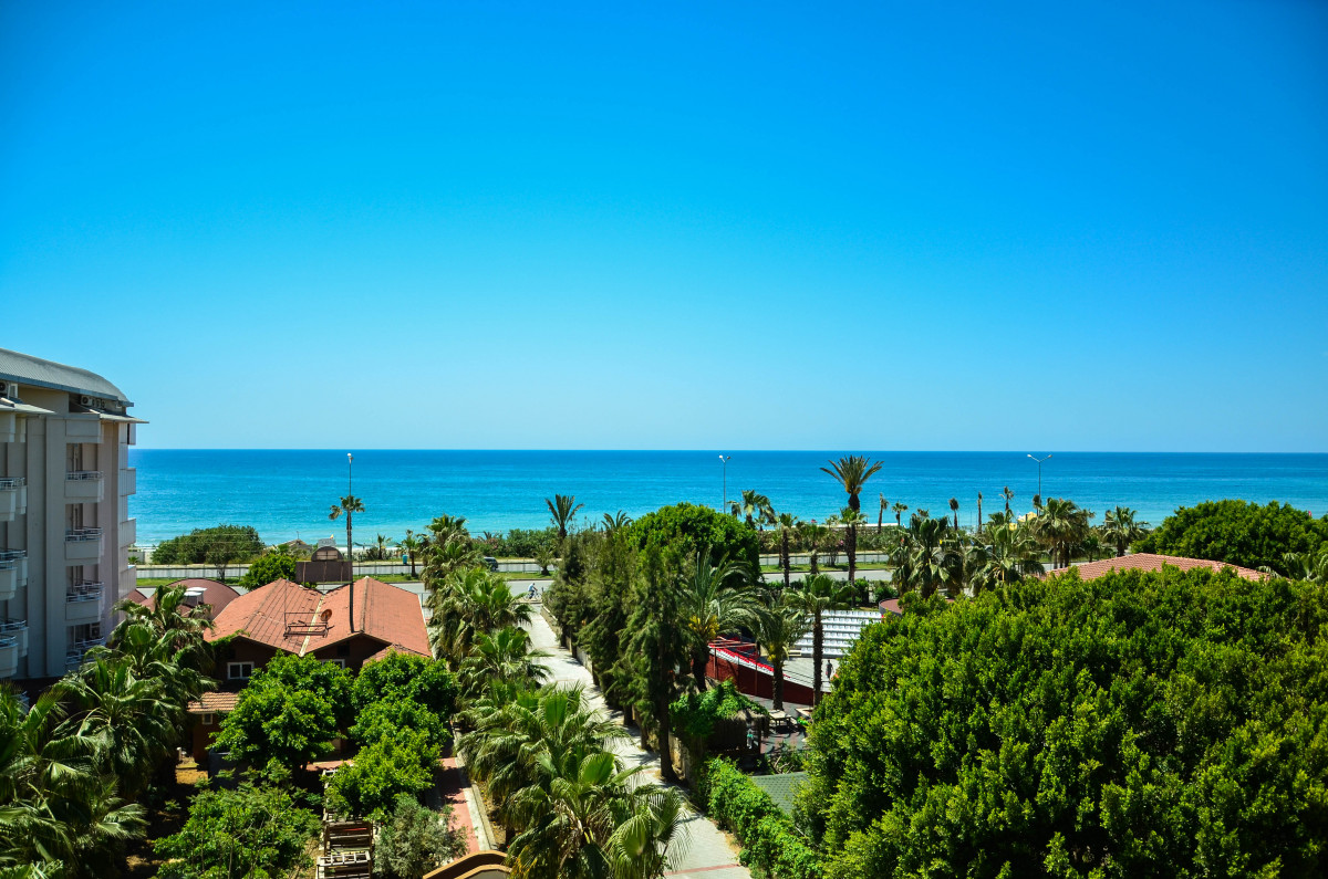 В 110 км от аэропорта г. Анталья, в 12 км от г. Аланья, в поселке Конаклы, в 150 м через дорогу от собственного пляжа по подземному переходу.