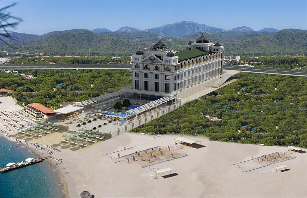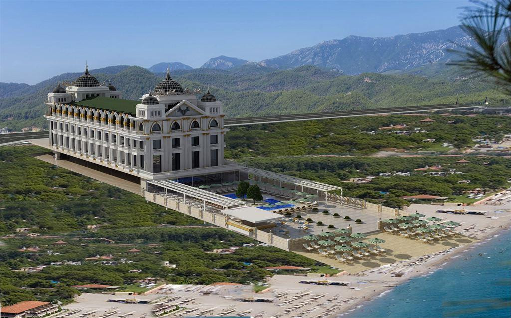 Расположен в 45 км от аэропорта г. Анталья, в 10 км от г. Кемер, в поселке Бельдиби, на самом берегу моря.