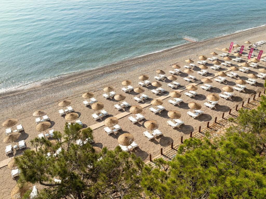 В п. Бельдиби, в 15 км от центра г. Кемер. Международный аэропорт г. Анталья находится в 40 км от отеля.