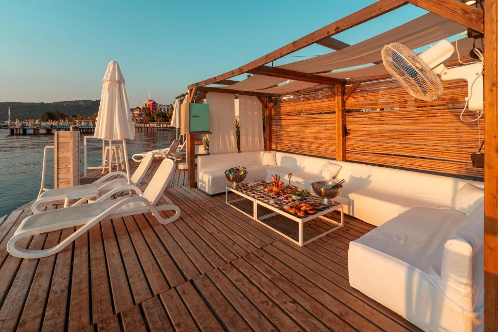 Отель обновлен, современный, очень стильный, необычная концепция питания - помимо основного ресторана, мини-кафешки вагончики с едой по всей территории, все качественно, вкусно. Море чистейшее, заход в море прекрасный. Всем рекомендую.