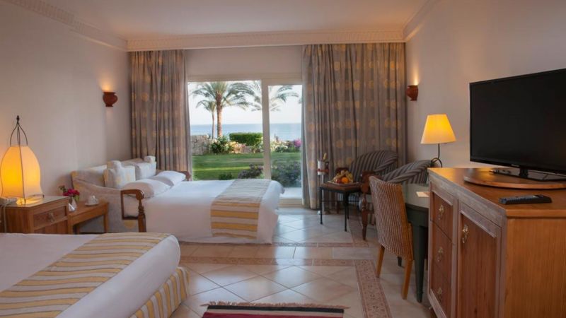 Самое худшее время проведенное в Египте, а точнее в этом отеле 1 при заселение сразу сказали 20 долларов все ускорит отказались. Вот тут все и началось дали номер 3301 мебель старая, грязная постельное белье все в пятнах и волосах, полы не мыты, на полу чьи-то следы, на балконе окурки. Попросили поменять номер не тут то было, ответили нет свободных номеров, но сказали, что в течении 20 мин. все исправят. Пришел уборщик с недовольным видом сменил белье и помахал тряпкой, это вся уборка. Далее ужин: за всем очереди, начиная от посуды. Вообщем весь отдых проходил то в очереди за едой, то борьбой с мухами. Отель полный отстой, успокаивало только море, за которым мы ехали.