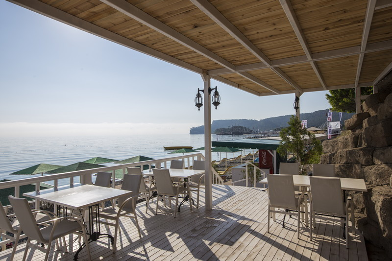 На самом берегу моря, в центре города Кемер, в 35 км от центра Анталии и в 50 км от аэропорта.