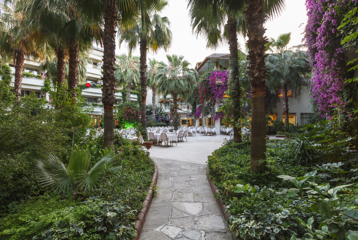 Хороший, не большой, уютный отель, окутан зеленью, питание нормальное, мы были сыты и болле чем. Фрукты яблоки, апельсины, персики, абрикосы, арбуз, дыня. Два открытых бассейна, две водные горки, бар работал на большом бассейне и на море, можно было пообедать на море и подкрепиться лепёшкой с начинкой. До моря 600 моих шагов. Лично нас всё устроило, мы не придирались. Наша цель это море, тёплое и чистое, еды валом и нормально переночевать. Номер убирали, полотенца меняли, кровати заправляли. Мыло в дозаторе. Туалетной бумаги валом, каждый день оставляли по рулону. Так прекрасно пролетели наши 10 дней. Ездили в античный Сиде на автобусе (проезд 45 ТЛ). В Манавгат на базар и на смотровую площадку. Анимация полностью отсутствует. Брали у отельного гида 2 экскурсии "Каньон ТАЗЫ", а именно рафтинг, обед, каньон и зиплайн. В общем и целом хорошо, только бы наоборот, сначала по жаре на каньон, а потом рафтинг по прохладной речке. Экскурсия "Северный Кипр" одним днём, ни о чем! 47900 жалко, что потратили столько денег, так уж красиво расписал гид. А именно это перелёт, там же очень быстро надо было всё посмотреть, всё ограниченно по времени. Кроме того у нас была включена в общую стоимость морская прогулка с купанием в море, а мы не знали! Не стали дополнительно доплачивать 30$ с человека и не поехали. Ждали остальных на берегу на жаре и назад в аэропорт. Деньги нам похоже не вернут. Сказали, что мы сами не захотели, смешно! Из окна автобуса оценили как красиво и богато живут местные жители, за городом и по дорогам выжженные поля, сухая желтая трава и голые, сухие деревья, обочины завалены мусором пластиковыми бутылками и автомобильными покрышками. К отелю это конечно же никак не относится, в отеле, и отелем мы всем довольны! Тихо и спокойно можно отдохнуть с детьми. Спасибо за Ваш труд! Рекомендую!