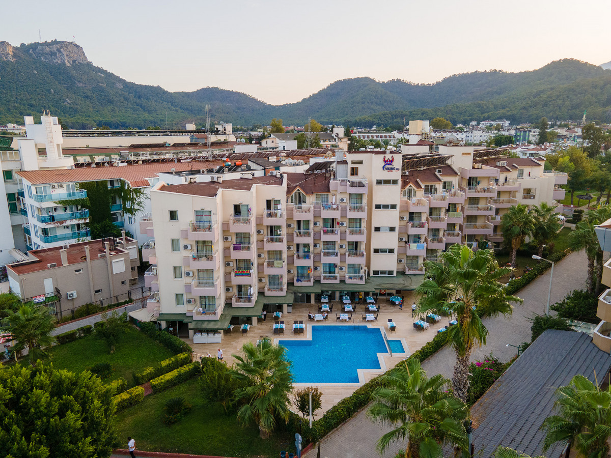 В Кэмэр приехали впервые. Из плюсов, от отеля все магазины и развлечения в шаговой доступности. Об отеле……тянет на 3*. Персонал разный. Заселили не сразу, в номерах убирались, еда однообразная, но не голодали))отдыхающие в основном иностранцы. Есть при отеле рекламный (кожаных и меховых изделий) )магазинчик. И там человек( не приятный тип) по имени Эдуард… предлагает экскурсию в магазин..мы очень долго сопротивлялись , но все же он нас уговорил, о чем мы очень пожалели…из магазина без покупок не выпускают….окружают человек 5-6 и идет психологический прессинг… не поддавайтесь , на уговорыэтот момент нам подпортил частично отпуск.. но экскурсия на яхтеМега стар, нас немного отвлекла, отлчная команда, было ярко весело, очень понравилось.погода была разная, море бодрящее, но чистейшее…в Кемер ещё раз приедем но не в этот отель..
