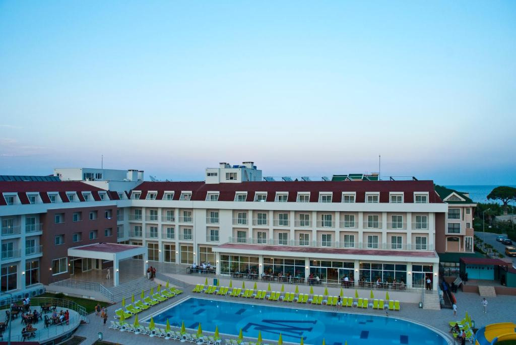 Добрый день всем! Очень хочу оставить отзыв об этом отеле. И сразу напишу, тем кто раньше отдыхал в пятизвёздочных отелях, я не советую ехать в этот отель. Для неприхотливых и кто первый раз в Турции, возможно он покажется не плохим. Я читала отзывы, кому то нравится... Начну с того, что отели рассматривали за три дня, так получилось. Нужно было выбрать из трех, выбрали этот. Почитали отзывы, вроде бы всё неплохо. Вылетали из Нижнего Новгорода, наш рейс задержали на 11 часов и когда прилетели в Турцию было уже темно. До отеля ехали около двух часов, и когда наконец очень уставшие вошли в отель, мы были с подругой и тремя детьми, я честно говоря была просто в шоке и моя десятилетняя дочь тоже. Нам с ней было с чем сравнить поверьте. В холле отеля стоял смрад состоящий из запаха сигарет и алкоголя, везде сидели шумные компании и галдели, время было примерно 23:00 Это зрелище было похоже на вокзал, но никак не на холл гостеприимного отеля. На ресепшене сидела молодая мадам, с лицом , как будто делала нам великое одолжение, заселяя в номера. Так как в отеле на всех этажах не было кондиционеров, они были только в номерах, в коридорах было душно и влажно, на полах везде был ковролин, от которого исходил не свежий аромат. Номера хоть и старенькие но слава Богу убирали без проблем и кондиционер работал исправно. Что касается питания: Очень скудное и многие блюда сухие, пережаренные и острые. Наши дети ели только рис , курицу и на завтрак блинчики с шоколадной пастой. Ни куриного бульона, ни нормальных молочных каш. Суп повторялся каждый раз один и тот же, или суп пюре из чечевицы или с шампиньонами сливочное пюре. Пироженных было много, арбузы сладкие, яблоки и сливы жёсткие. С маленькими детьми там делать нечего, желудок точно посадите. Ресторан где обедали ,рестораном ни в коем случае не назовёшь. Это столовая, со столами непокрытыми и плохо вытираемыми, что касалось и посуды, мыли плохо. На столы стелили небольшие клеенчатые салфетки, тоже вечно обляпаные. Вообщем об отеле больше писать не хочу, теперь о плюсах. Отель небольшой, один бассейн на территории с двумя горками, дети основное время проводили в нём. Давали на баре мороженное с 16-17ч. Вода коктейли тоже рядом с бассейном. По вечерам была дискотека, турецкое шоу, караоке, не плохо. Люди пели танцевали. Кроме русских много Турков с семьями, Украинцев и Казахстан. Внимания уделяли всем. Самое чудесное это было Море!!! До моря идти 3-4 минуты вдоль других отелей. Берег замечательный, вода чистая ,теплая. Плавать одно удовольствие. Лежаков хватало всем. На берегу кафе отельное, там с 15-до 17 давали каждый день картошку фри и полусушеные гамбургеры. На этом еда заканчивалась. Вода , пиво и напитки, Кстати о соках, все они порошковые. Мы их не пили. В целом отдых получился не плохой благодаря экскурсиям, морю и массажисту в отеле( он врач мануальщик) к сожалению забыла его имя. Он сотворил с моей спиной чудо. Нашел все мои проблемные места, зажимы и шесть сеансов разгонял их прорабатывая также все мои косточки и суставы. Ему отдельное огромное Спасибо! Он там один такой профессионал, остальные просто делают массаж. PS: У Турции сейчас экономический кризис не смотря на то что путевки очень дорогие. Поэтому тщательней выбирайте отели! 175000-200000 тоже на дороге не валяются. За эти деньги мы могли отель достойнее. Но я не сожалею Тепе