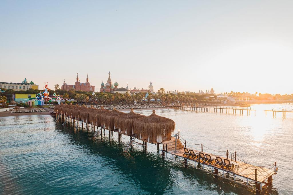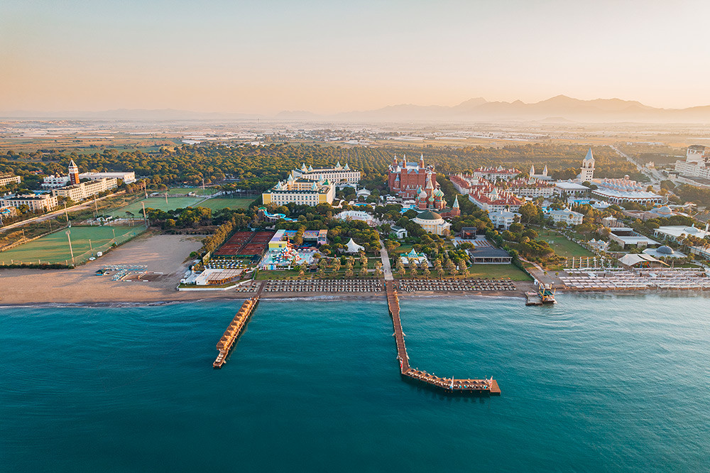 Отель порадовал, но не оправдал всех ожиданий. Плюсы: близко к аэропорту, городу, отличная территория, достаточная анимация и взрослая и детская, активности, неплохое питание. Отличный кофе в баре возле ресепшн. Достаточно приветливый персонал. Достаточное количество шезлонгов и на пляже и у бассейна. Хороший пляжный бар, где в обед можно перекусить очень вкусной рыбкой на гриле. По номеру: мини бар входит в стоимость, пополняется ежедневно. Номер у нас был обычный, видно, что без реновации, но поддерживается в должном виде. Балкон выходил на стройку и на море, однако, шума не было, видимо в разгар сезона шумные работы не проводят и это хорошо. Сейф в номере. Кровати удобные, но это дело индивидуальное. К плюсам можно отнести, что от корпуса до бассейна, взрослых горок, ресторана, ресепшн идешь под сводами, защищен от солнца. Отличный напор воды в душе. Питание разнообразное, что-то повторяется, базовые основные позиции, но в целом выбор большой. По вкусу не всё нравилось, но голодными не были. Огромный выбор зелени, овощей, разные заправки. Дессерты тоже представлены массово, плюс отличное кафе возле ресепшн. Терем 24/7 - спасение для вновь прибывших, уезжающих и семей с детьми, можно вообще быть не привязанным к основному ресторану, всегда можно зайти и перекусить полноценно. Сан узлы на территории отеля в общественных зонах достаточно чистые, еще бы сами люди были почистоплотнее. Персонал на 95% русскоговорящий. Минусы: по питанию не хватило морских деликатесов, рыба присутствовала всегда, но ее могли пересушить, не досолить, и т.д. понимаю, что здесь больше про накормить, чем про гастрономию, но тем не менее...даже креветок не было. В морском ресторане а-ля карт тоже не сказать, что очень вкусно, к сожалению. Отвратительный кофе на завтраке в основном ресторане. В период очень высокой загрузки нехватка столов, приборов, стаканов...Официанты стараются, но не все и не всегда, плюс видно, что середина сезона - они уже уставшие. Уборка в номере не сказать, что плохая, но не внимательная, постоянно не докладывали нужное количество полотенец, приходилось просить. Зубные наборы в номере не лежат, но можно спросить на ресепшн или у горничных, если нужно. Бритвенные также. Не понравилось, в сан узле в зоне раковины расположение жидкого мыла - далеко в углу на стене. Дети без родителя не могут самостоятельно помыть руки. Нет подставки под ножки, раковина высокая достаточно, до мыла не дотянуться, это отель для семейного отдыха, такие нюансы для комфорта гостей должны быть учтены, или положите кусковое мыло хотя бы дополнительно. Магазинчики на территории не очень актуальные. Отдаленность от города, но мы знали, когда ехали, поэтому это условный минус. До города ехать не очень далеко. Яндекс такси к Отелю вызвать нельзя, но там дежурит местное такси, можно сторговаться, но выйдет всё равно дороже. Обратно можно спокойно вернуться на Яндекс такси. Отель можно рекомендовать.
