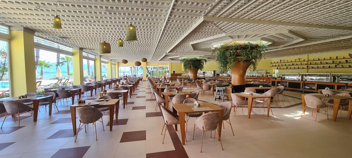 Были в отеле с 13 по 29 июля. Очень большая территория, отель утопает в зелени. Приветливый персонал. В ресторанах официанты помнят какие напитки предпочитает отдыхающий. Хорошая еда . Жили в корпусе С, это возле ресторана, где проходят ужины с прекрасным видом на море, потрясающие закаты. Так как большая территория много ходили, но это скорее плюс. Уборка в номерах ежедневная. Пляж огромный, он простирается вдоль всего отеля, лежаков много.. От отеля можно доехать до Фетхие на катером 10 долларов . Мы ездили на такси, тоже 10 долларов в одну сторону. Море чистое, теплое, бесплатно катание на катамаранах, сабсерфах .